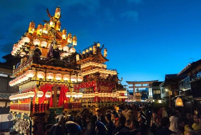 日本全年都有祭典,十月也不例外。许多祭典是从简单的庆祝丰收演变成今天所看到的丰富多彩的游行。10 月 9 日和 10 日举行的秋之高山祭是最令人印象深刻的活动。