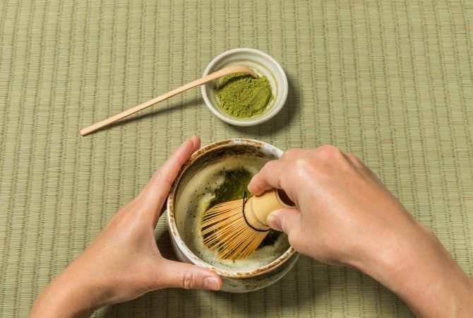 茶道大师会使用各种专业用具,包括茶碗、竹制茶杓和竹制茶筅。