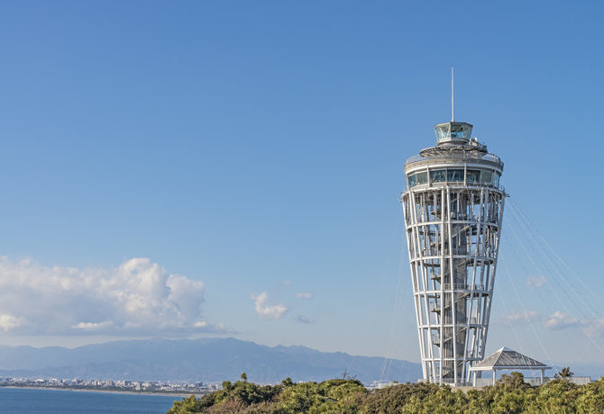 在由比滨的沙滩上结束一天的行程。这里不仅夕阳很美,天气晴朗时,还能看到富士山。此地全年都很适合游览。不过,若您在夏天光临,您还可以去由比滨观看烟火表演。