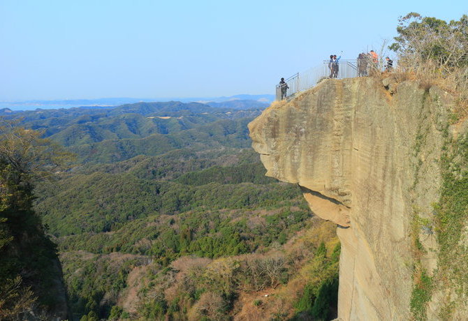 鸭川海洋世界与锯山隔着半岛对望。海拔 330 米的锯山布满了步道,有些通往锯山日本寺,有些则能观赏到壮丽的东京湾、东京晴空塔、三浦半岛、富士山与伊豆大岛,且步道周围尽是原始的锯齿状峭壁。另外,您也可以观赏到数千尊地藏菩萨的小型雕像,它们以不同姿势盘踞在悬崖边,守护着这些步道。