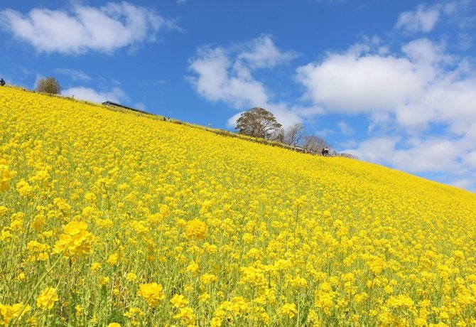 再继续往北走就来到了东京德国村。东京德国村以优美的德国乡村景观为原型,设置了包括摩天轮、儿童动物园、云霄飞车等多项游乐设施,还有摘水果活动等。这个地区春天的景色特别迷人,届时连绵的山丘就会铺满明亮的青苔与粉红色花朵。
