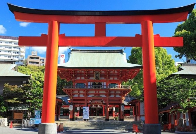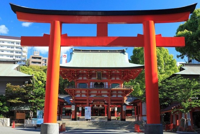 在 Tor 路的东边,是生田神社的鸟居。建于公元后 201 年的生田神社与神户有着深厚的渊源。周边是神户的现代市中心,生田神社全年举办多场大型祭典。