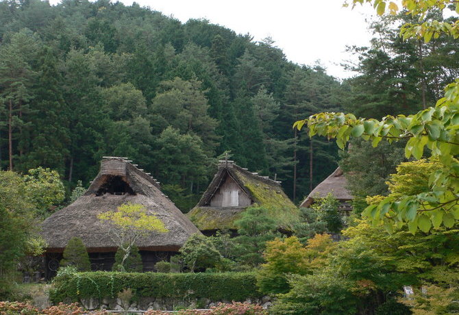 约 30 间保存良好的合掌造(即陡峭的茅草屋顶)房舍分布在一座池塘周围,看起来就像童话中的场景一样。其中有多间对外开放。
