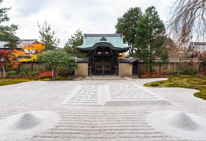 这座建于 1606 年的禅寺与茶道始祖千利休颇有渊源,美妙的庭园里捕捉了四季之景。于春季、夏季或秋季到访的游客可以在夜晚欣赏灯光映照下的庭园。