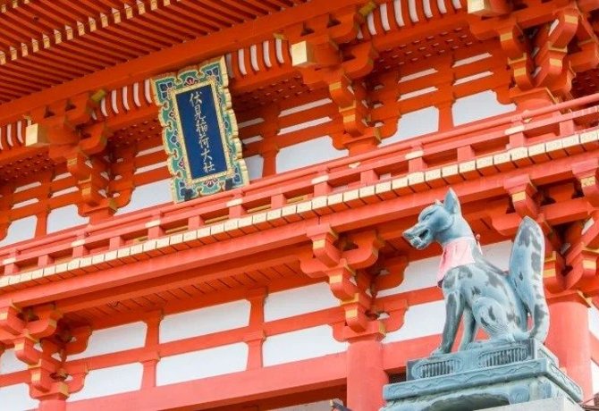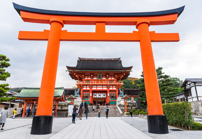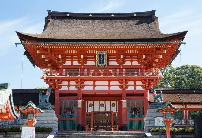 伏见稻荷大社位于京都站南边,这是一个以清酒酿造厂闻名的地区。宁静的神社腹地由名为稻荷 (Inari) 的狐神守护,吸引着游客前来参观。红色的鸟居形成隧道,通往正殿后方的森林。若想多伸展下筋骨,可以沿着木制步道继续往上走,到达海拔 233 米高的稻荷山。