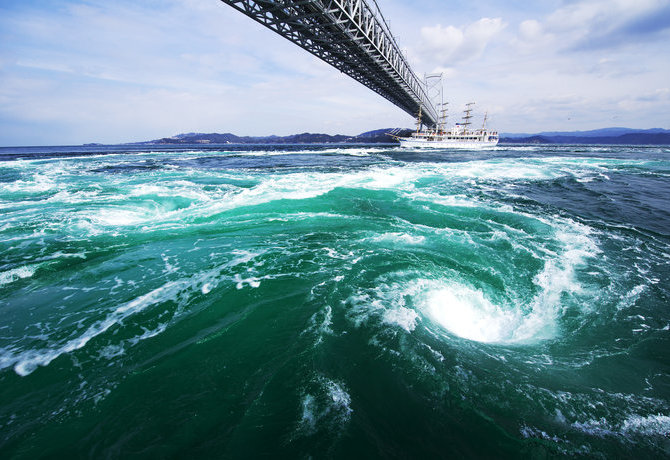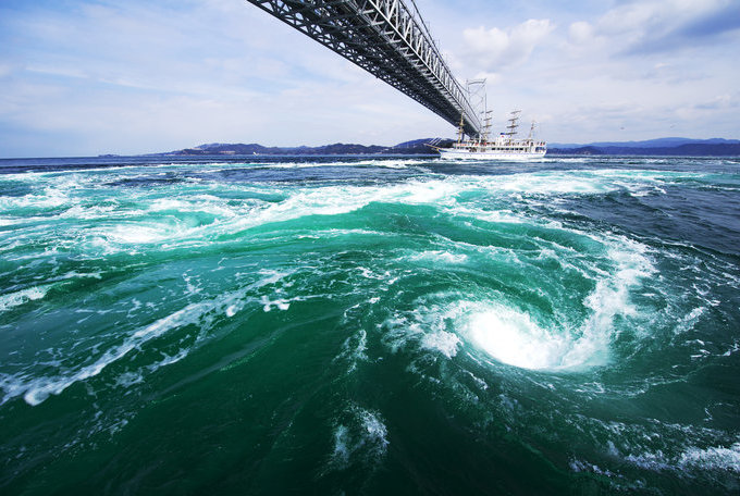 您可以从山顶近距离观赏鸣门公园。许多作品都曾描述过这些出现在鸣门海峡上的漩涡。您可以从展望台上欣赏,也可以搭乘观光船近距离观察。