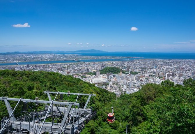 附近的眉山有着当地独有的绝美景色,是这个区域的地标。搭乘缆车到山顶,参观佛塔和平纪念塔与 万华镜美术馆,同时欣赏美景。