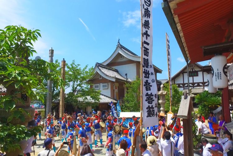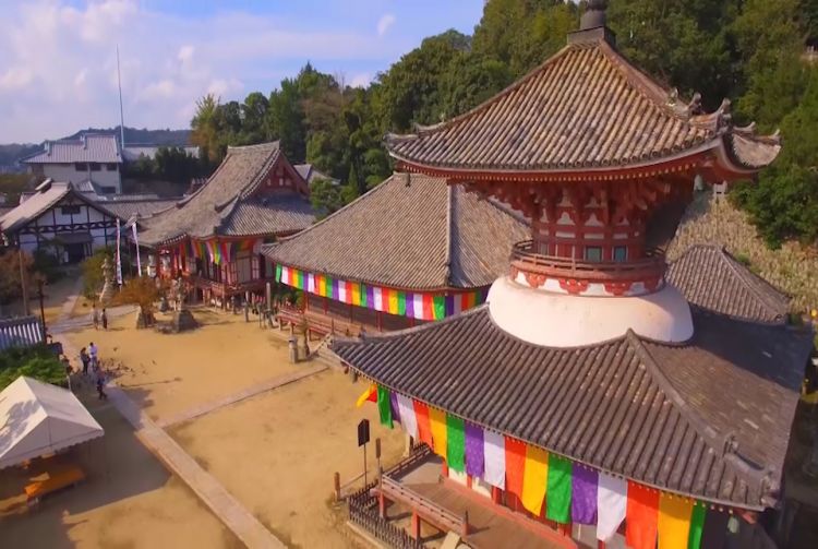 在众多寺庙中,有几座寺庙已被指定为国宝和重要的文化遗产。位于行道遥远尽头的净土寺据说由圣德太子 (574-622) 所建,他是在日本推行佛教的先驱。地面上矗立着一座两层佛塔,屋顶倾斜,清雅大方。佛塔和主神社建筑均属于指定国宝。