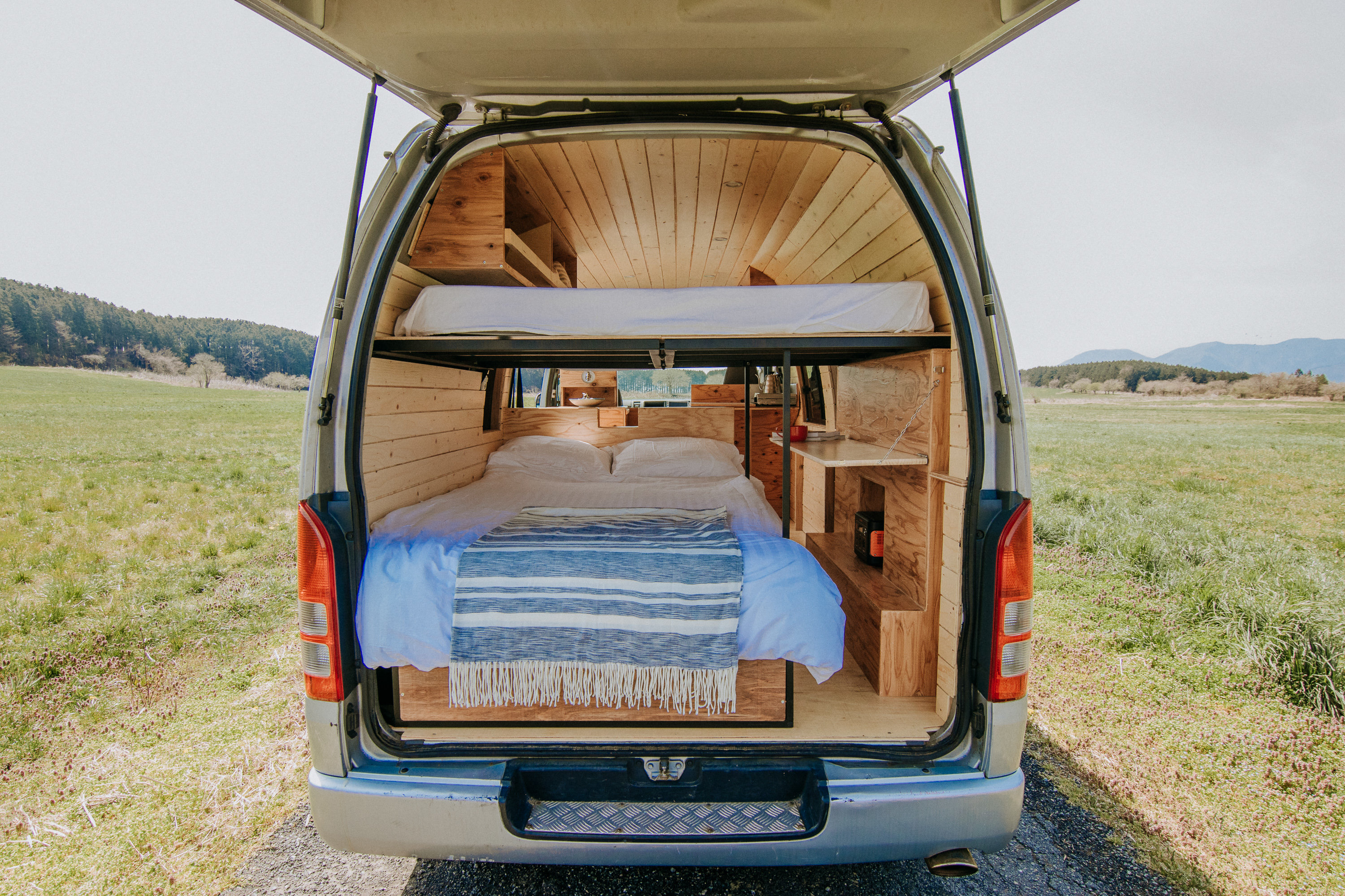Hiace 是最大型的露营房车,亦是家庭旅行的最热门选择。配置有五个座位,睡铺可容纳两位成人及两位儿童。
