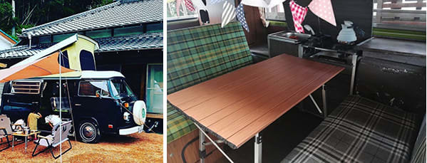 经典款 Volkswagen 露营房车极具复古魅力。(左)露营房车内饰风格犹如咖啡厅。(右)图片来源: Carstay Co., Ltd.