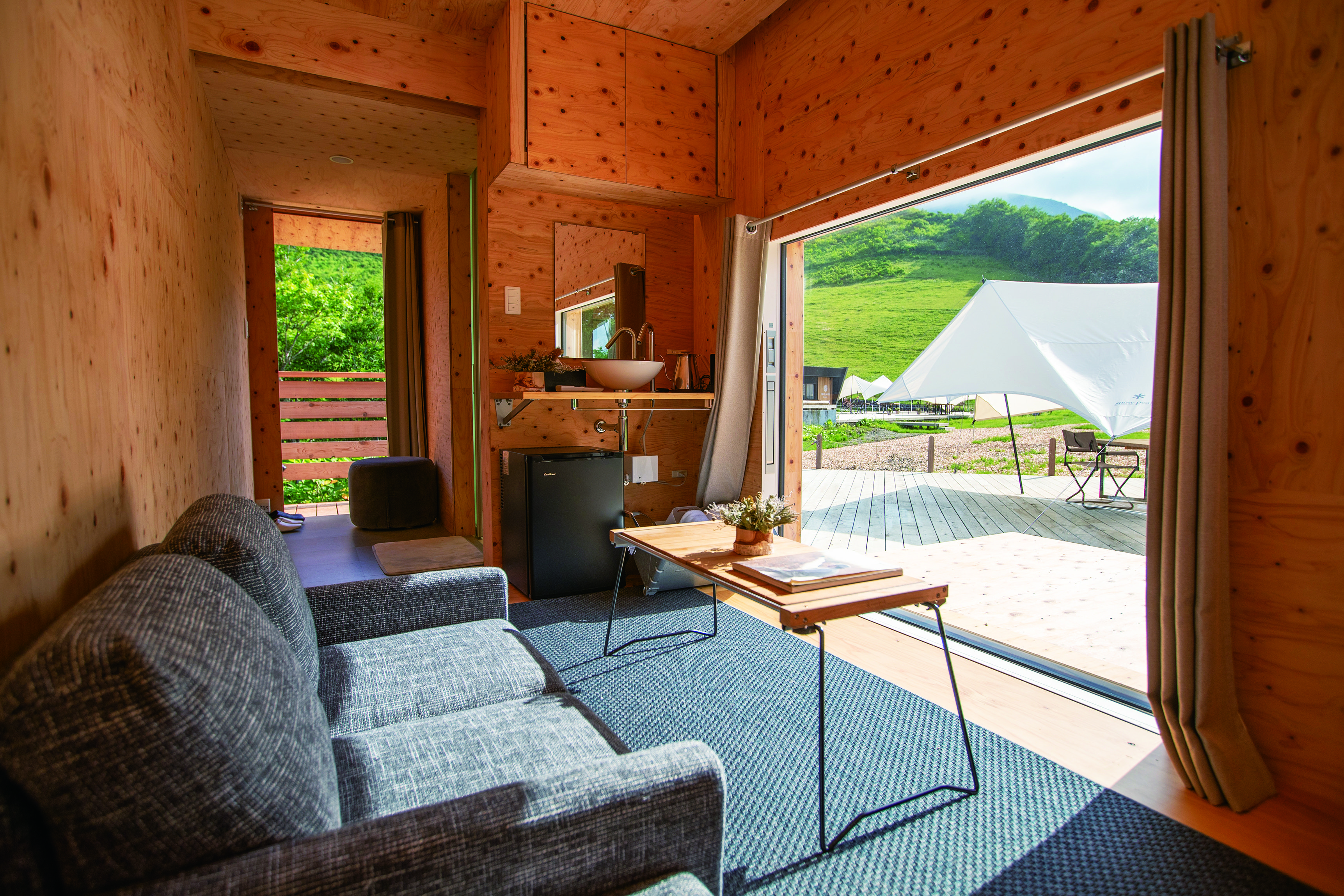 高山中的奢华露营场地。图片来源: Snow Peak FIELD SUITE HAKUBA KITAONE KOGEN