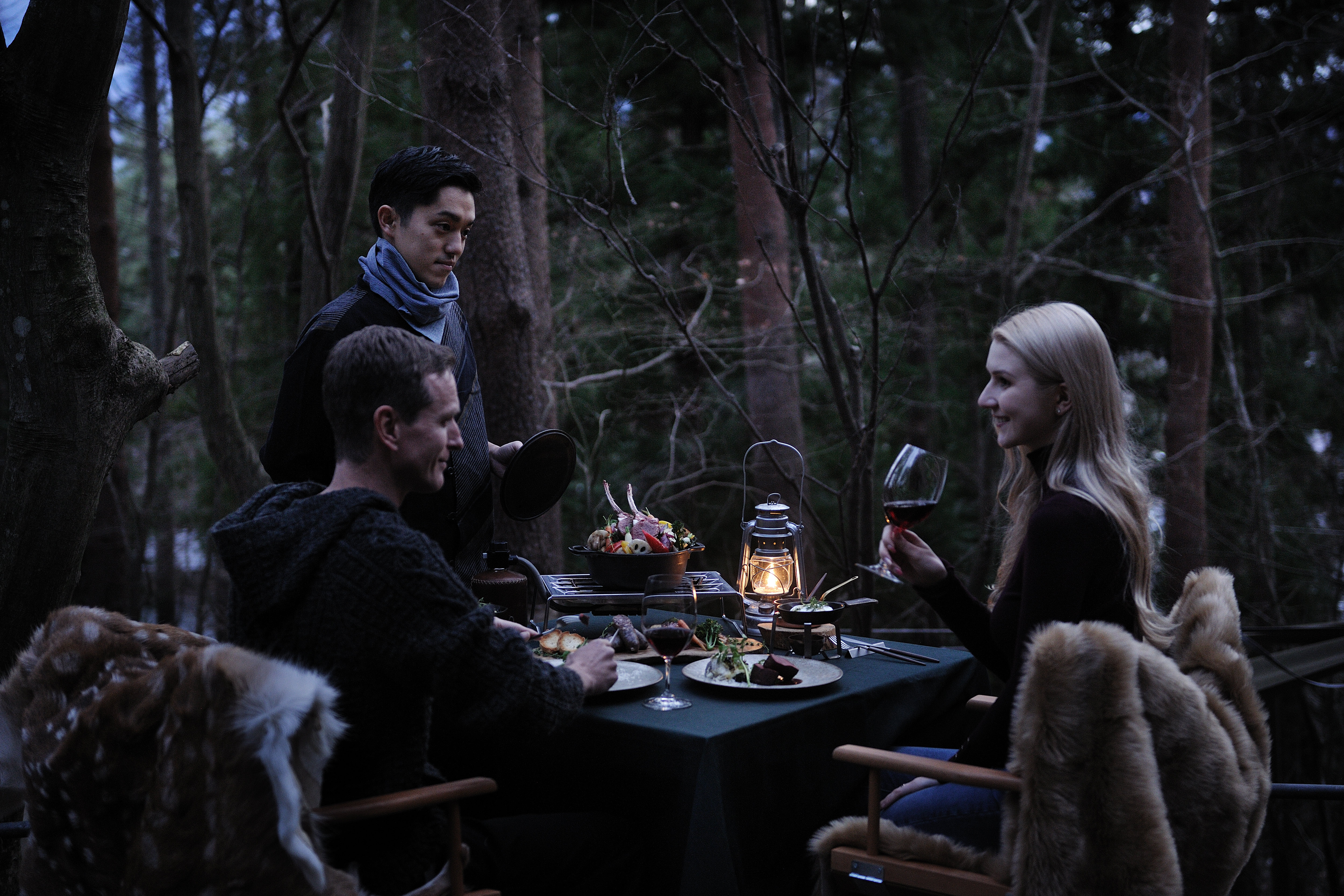 傍晚时分,可享用以当地野味为主要食材的法式佳肴。成年旅客可在云海露台享受炽热营火,舒适啜饮一杯浓郁的日本威士忌。