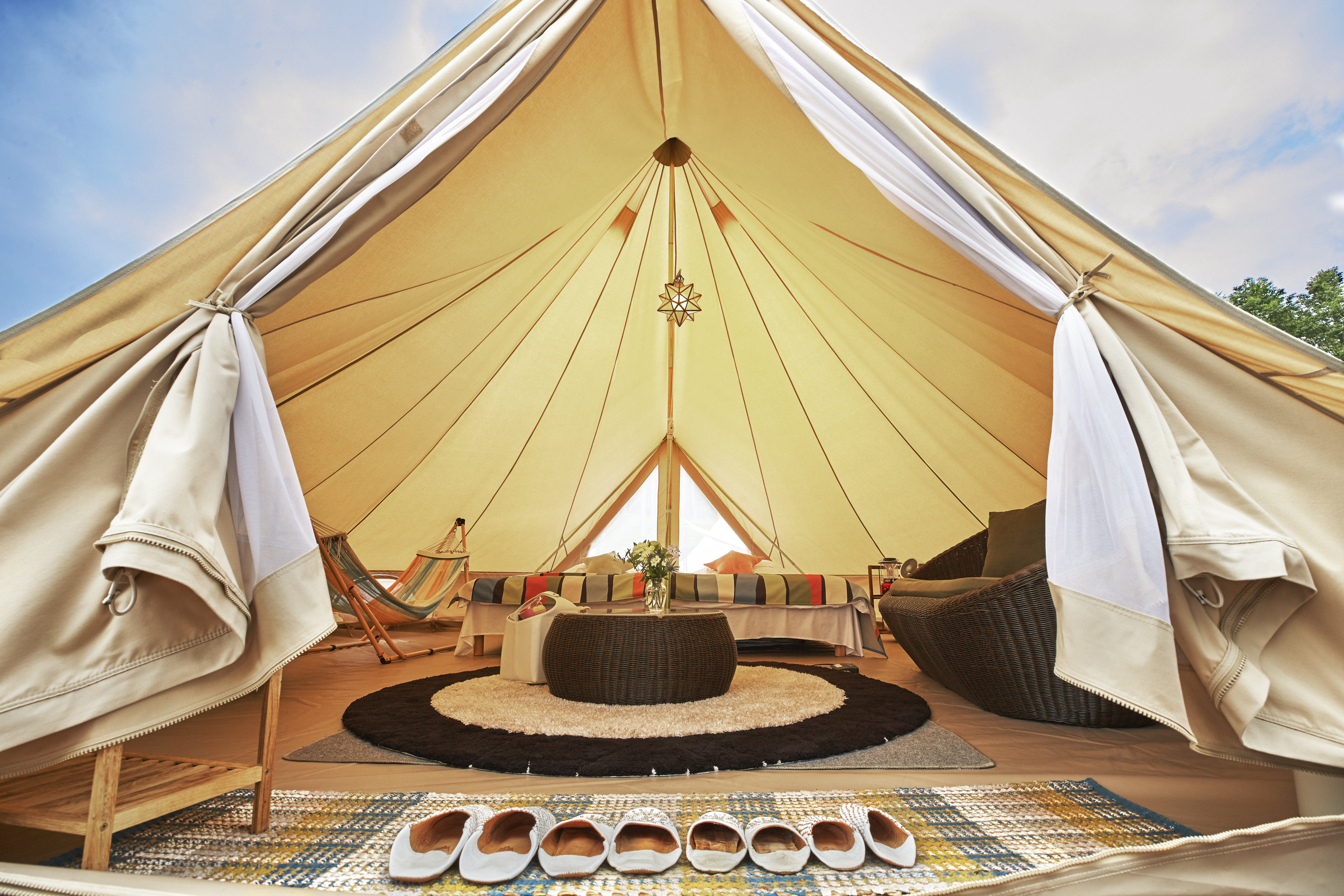 奢华露营是“奢华”与“露营”的合成词。奢华露营场地有贴心的工作人员及周全的家具设施,并已竭力消除在常规露营中可能面临的一切烦扰。您无需自带睡袋、自行搭设帐篷或准备食物。