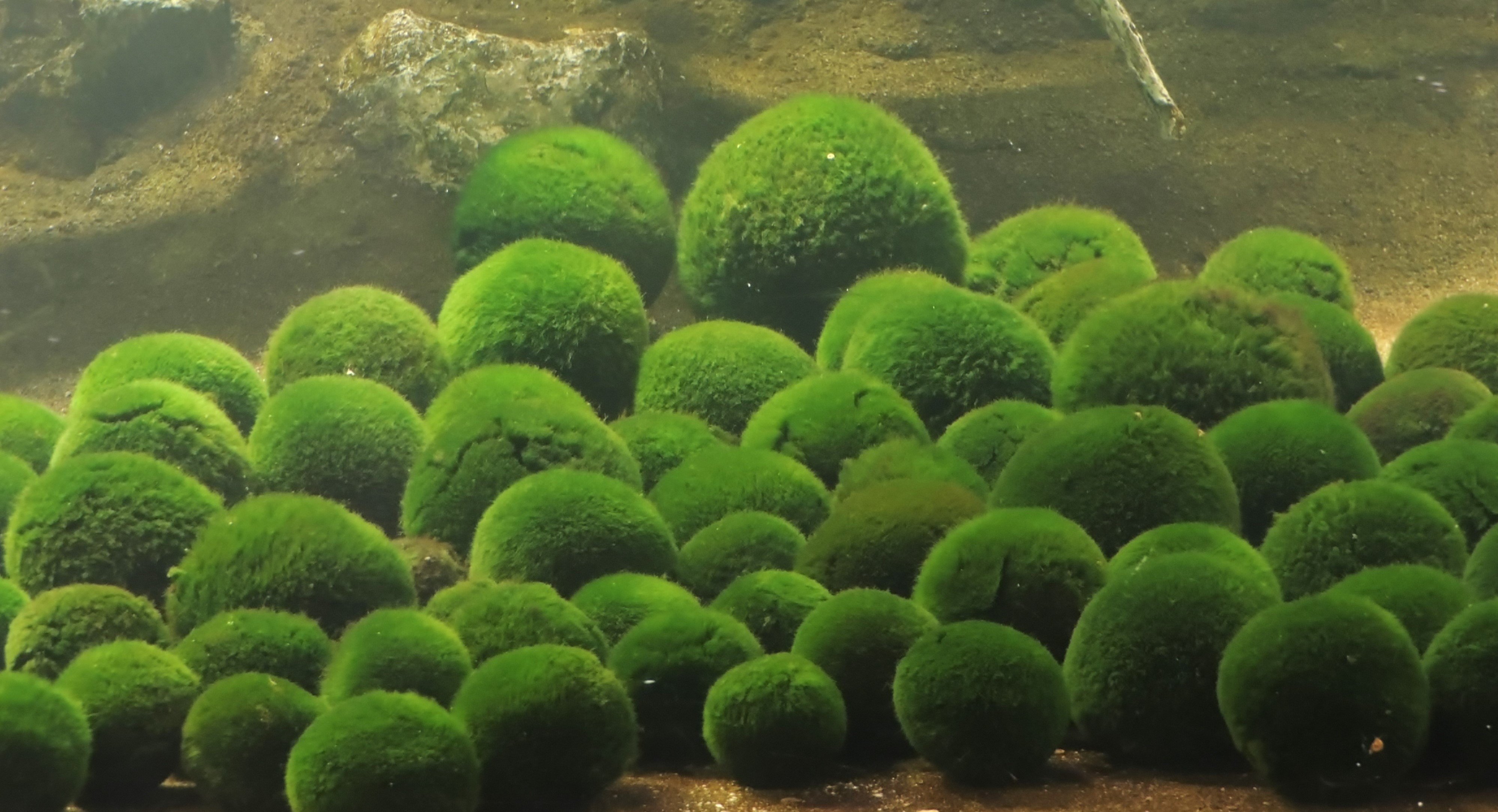 阿寒湖是球藻(左)与红鲑(右)的栖息地。