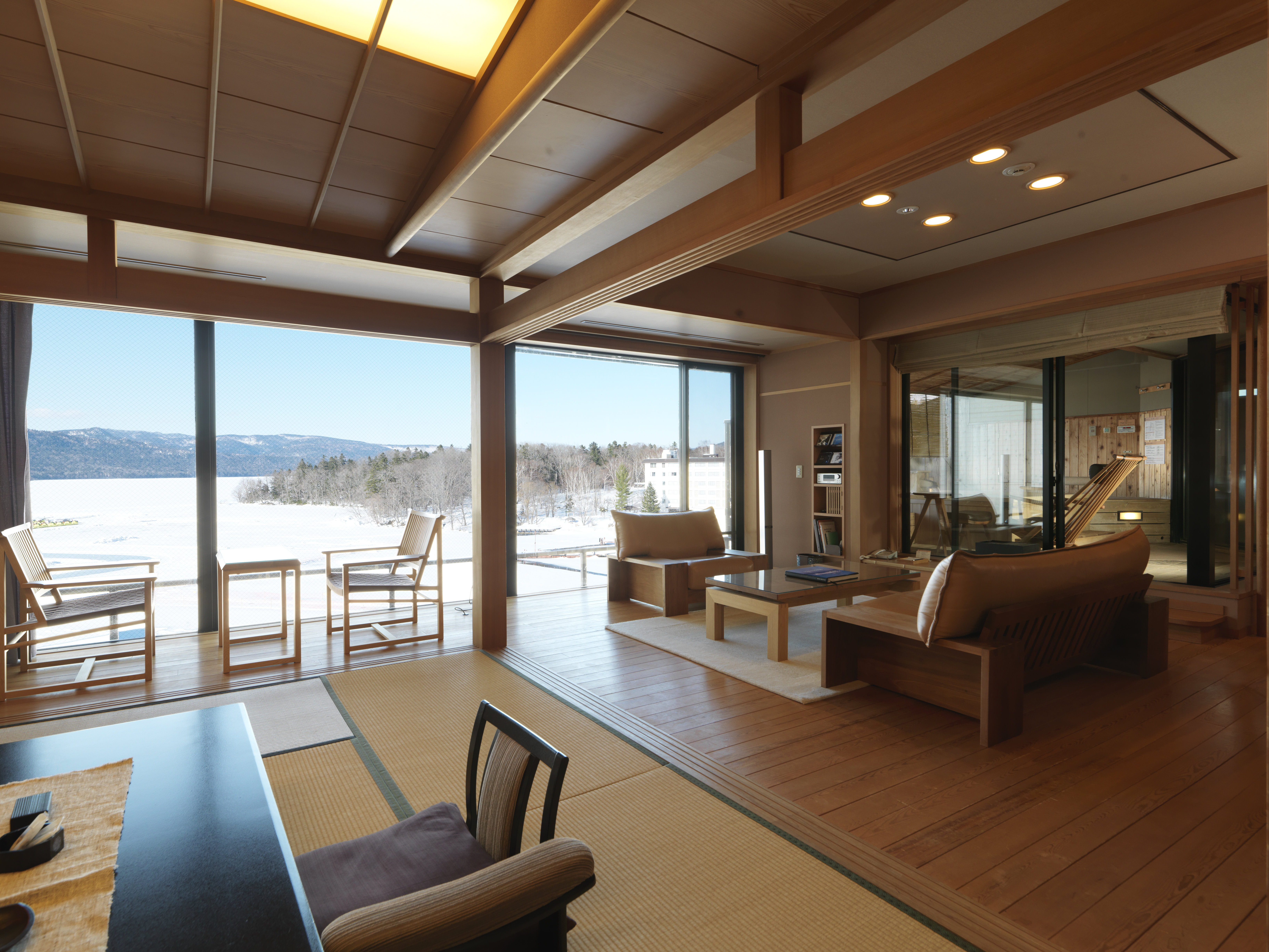 入住特別套房 Ama no Za Suite 天之座,将阿寒湖美景尽收眼底。Photo credit: Akan Tsuruga Bessou HINANOZA