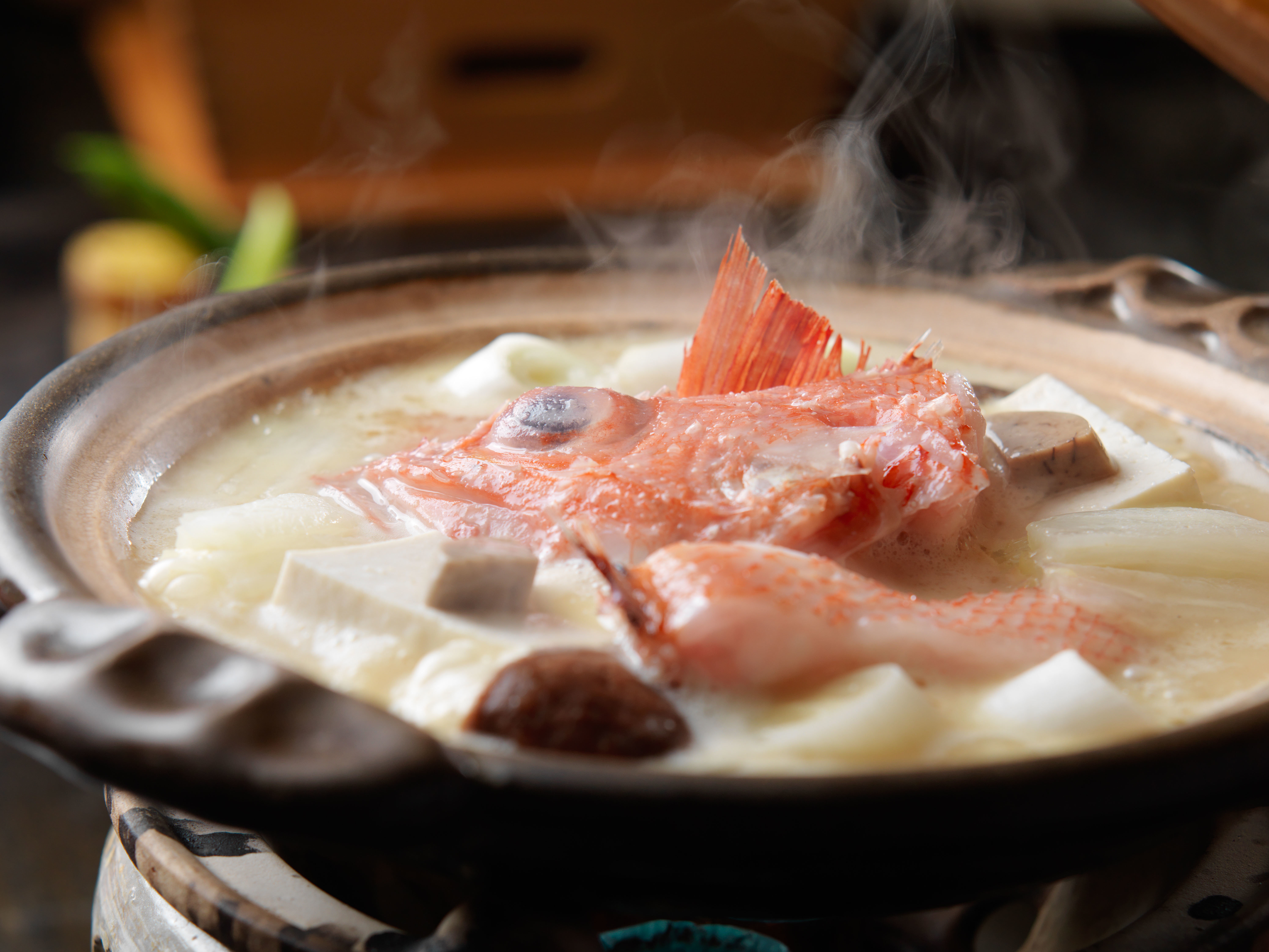 肉质甜美的独创美味的大翅鲪鲉独创火锅采用白味噌酱调味。Photo credit: Akan Tsuruga Bessou HINANOZA