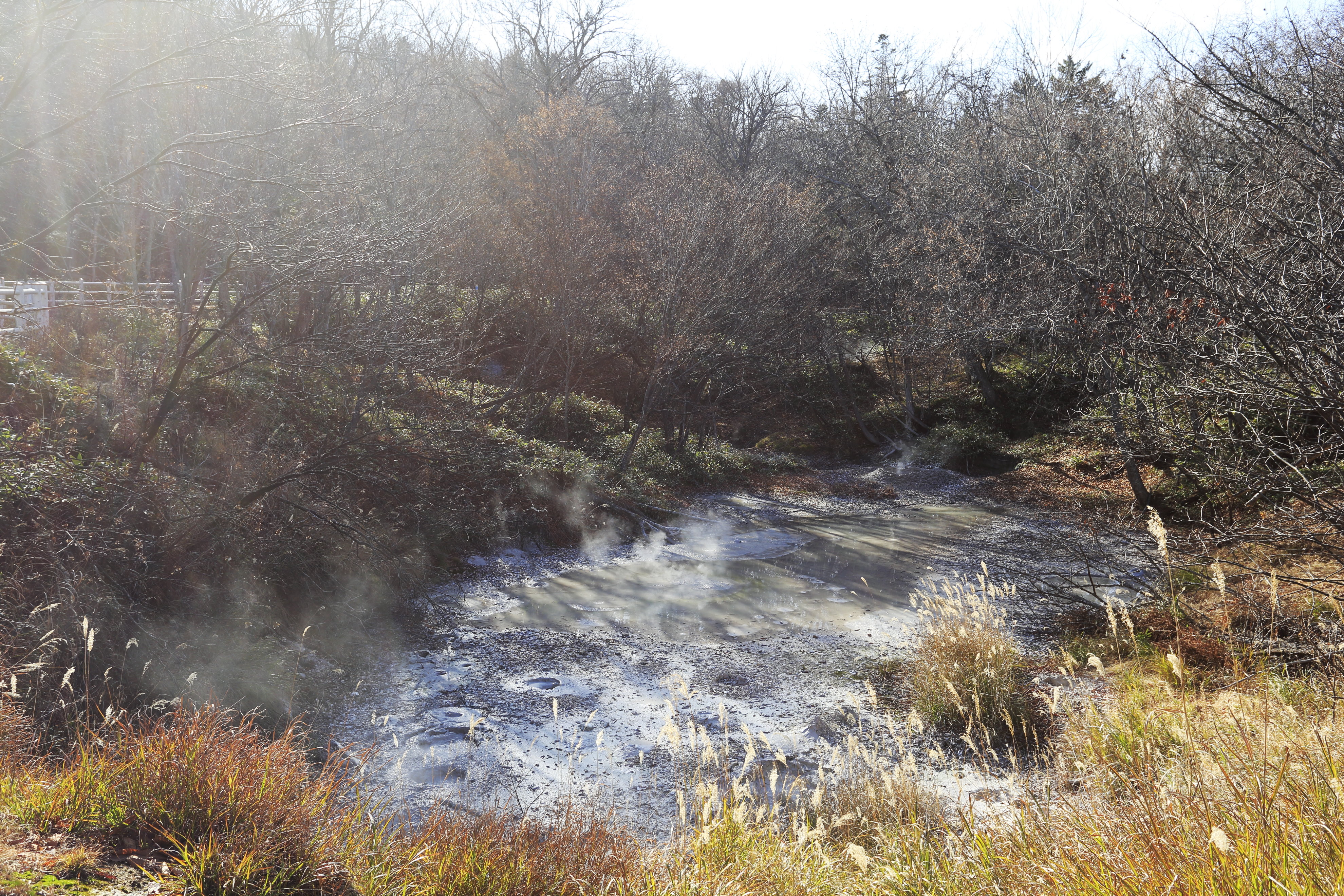 “Bokke”是阿寒湖南岸不断沸腾冒泡的活泥火山。Bokke在爱努语中意为“沸腾之地”,顾名思义,受地热加热的泥浆温度约为 100 摄氏度。泥浆与火山气体以规律节奏沸腾并从地面喷涌而出。这是该地区火山活动的一个显著示例。