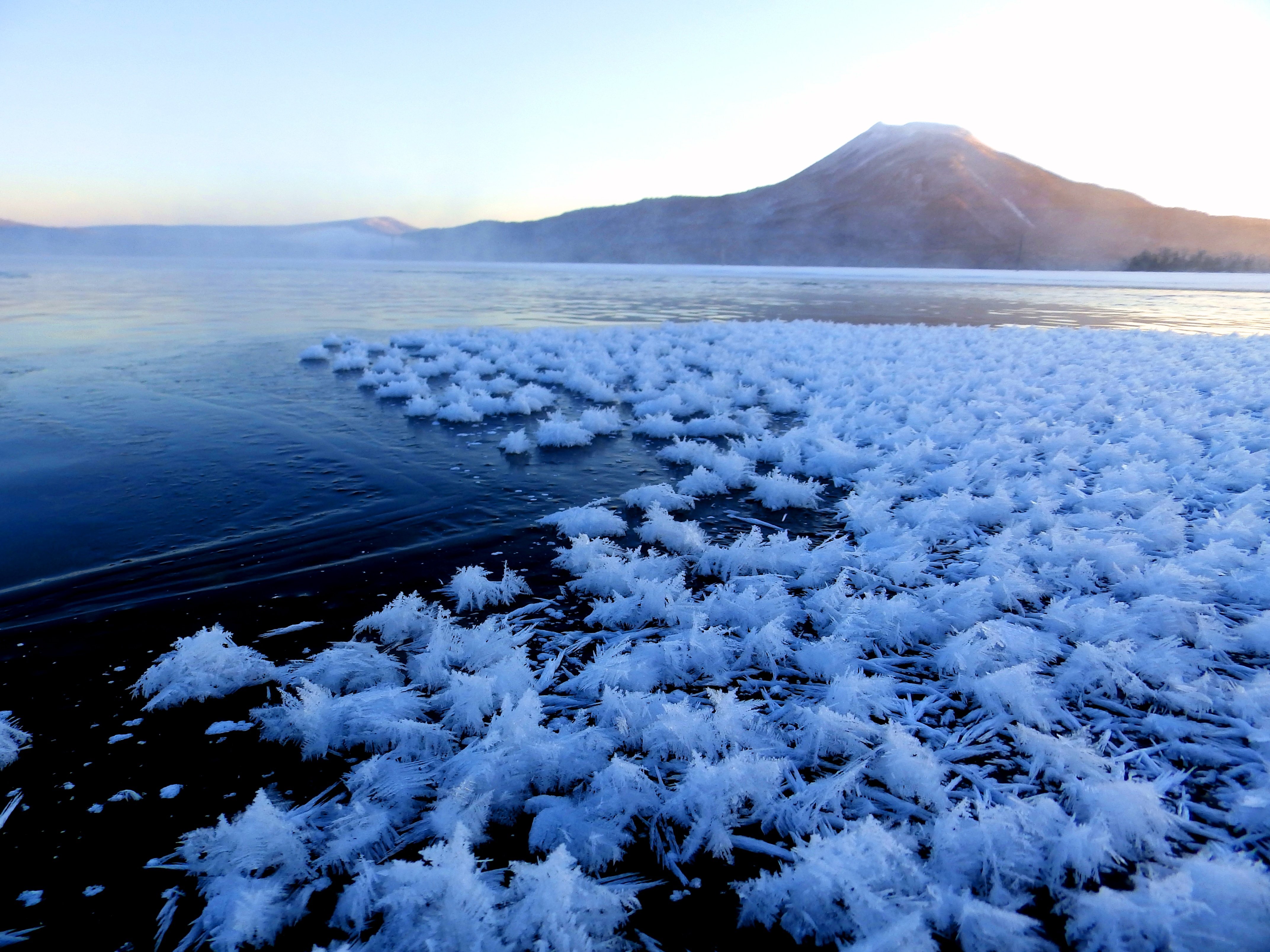幸运的游客甚至可以欣赏到绝美的霜花景致。这些“花朵”其实是白霜中的一种。当空气中的水蒸气冻结时,冰晶便会以类似花朵的形状沉积于表面,从而形成霜花。霜花仅在 -15 摄氏度或更低气温时的纯净环境中出现。据徒步导游高田茂先生介绍,12 月下旬是欣赏霜花的最佳时机。