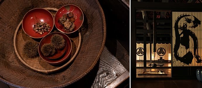 低调的季节性装饰体现出雅致品味。(左)纸拉门上的字是亚历克斯先生所写的“篪庵”两字。(右)
