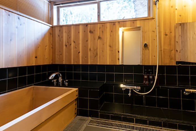 还有设有桧木浴缸的浴室及淋浴房。