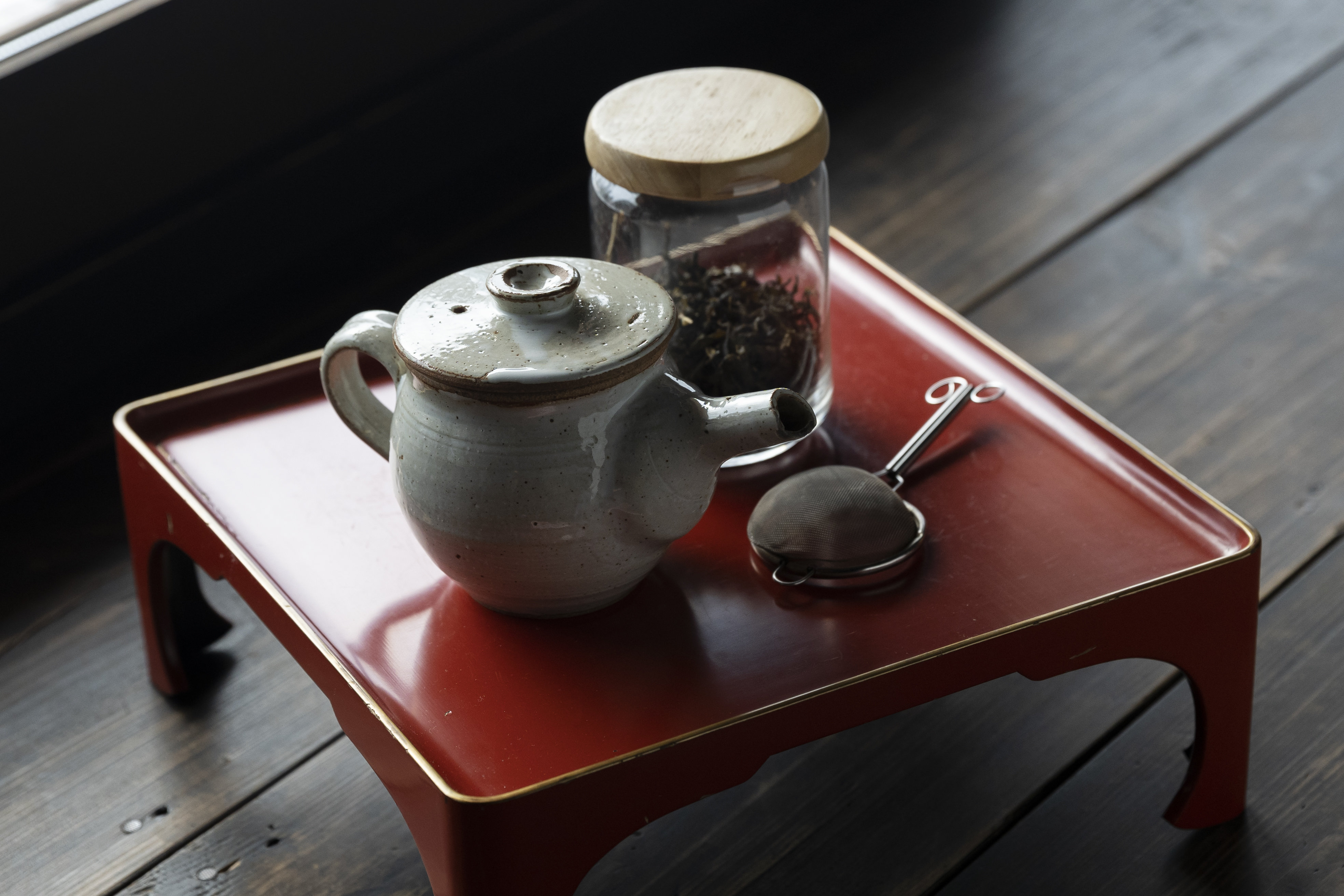 客厅的外侧设有日本建筑传统的木走廊,坐在这里一边欣赏被雪染上银色的远山,一边泡上一杯“祖谷番茶”。这个日本茶用的是祖谷溪谷的茶叶,经过全手工的摘取、挑选、干燥制成。由于很少在当地以外的市面上看到,因此被称为“梦幻之茶”。