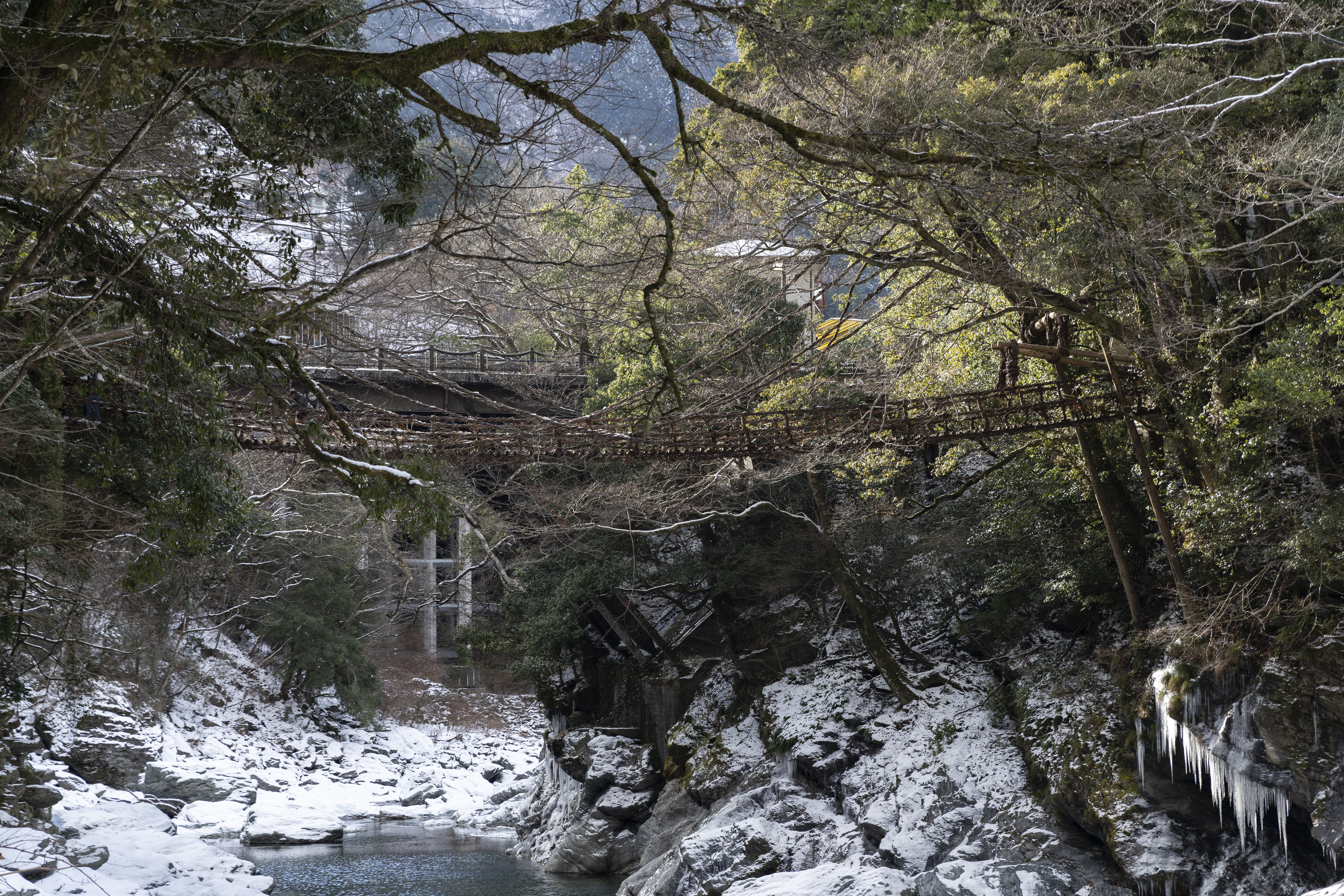 现在的祖谷有2种蔓草桥,亚历克斯先生推荐的是距离“祖谷蔓草桥”向东30千米的“奥祖谷二重蔓草桥”。这里架着两座蔓草桥。由于地处车辆无法通行的村落深处,因此游客稀少,是个不为人知的好地方。