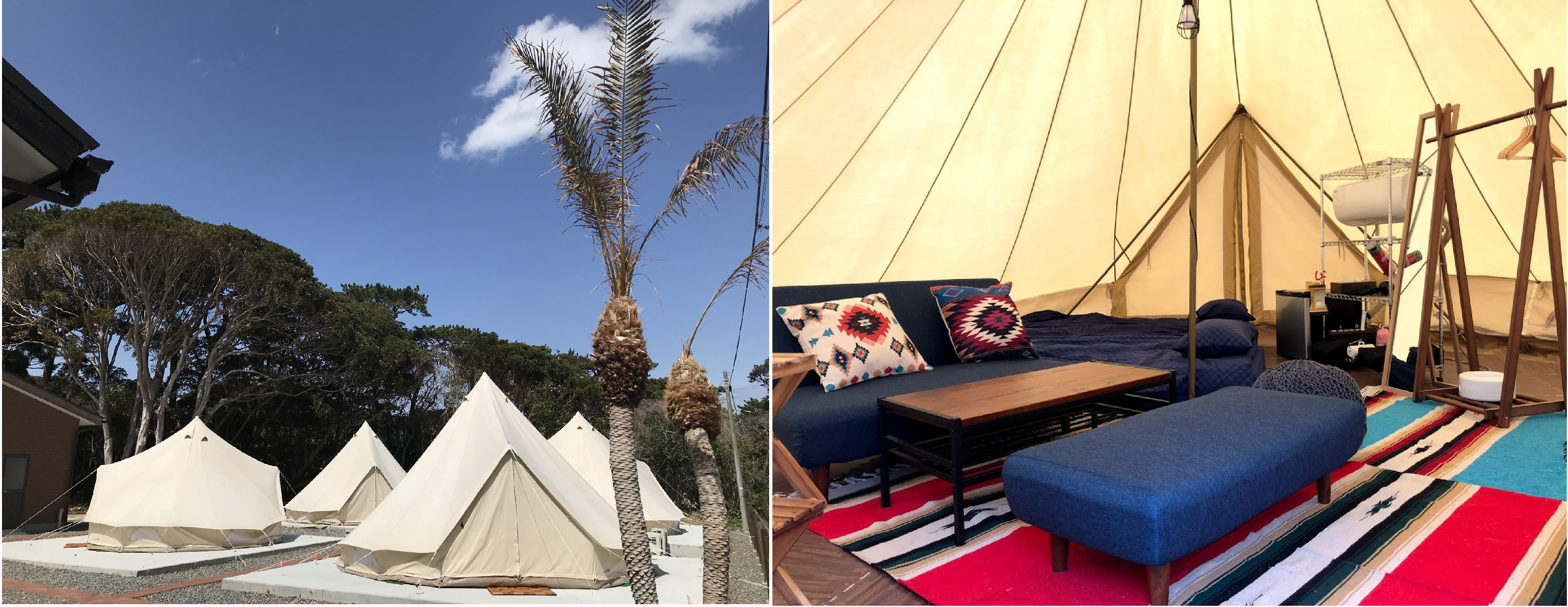 前往邻近的式根岛,在 Nagi Glamping 享受豪华露营体验,对于爱好美食和好品质休闲体验的游客来说,是一个极具吸引力的选择。露营场所配备了空调蒙古包,为游客提供一种全新的舒适露营体验。蒙古包直径 6 米,最多可住 4 人,床、被褥、冰箱、地毯、沙发和桌子等设施一应俱全,十分舒适。住宿还包含一顿精心准备的“Omakase料理”晚餐。菜品都是由来自式根岛的应季食材和新鲜海鲜烹制而成,同时搭配有精心挑选的日本酒酿饮品。
