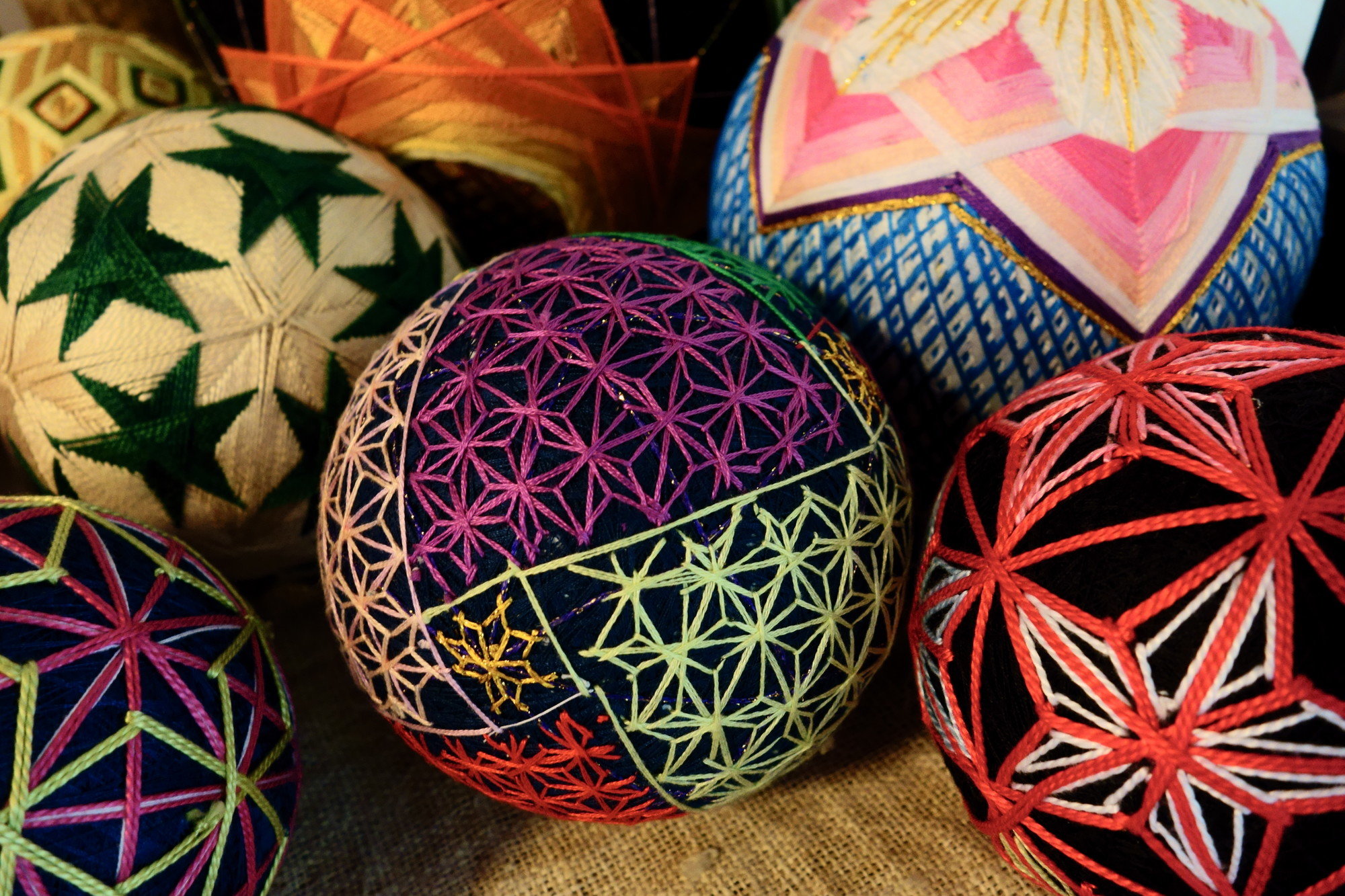 手鞠球尺寸众多,表面饰有复杂的几何图案或印花刺绣。手鞠球匠人大多技艺精湛,只需使用纸张、稻壳和棉线这些简单的材料,就可以呈现出花朵、星星、小鸟,甚至波浪等复杂的图案。