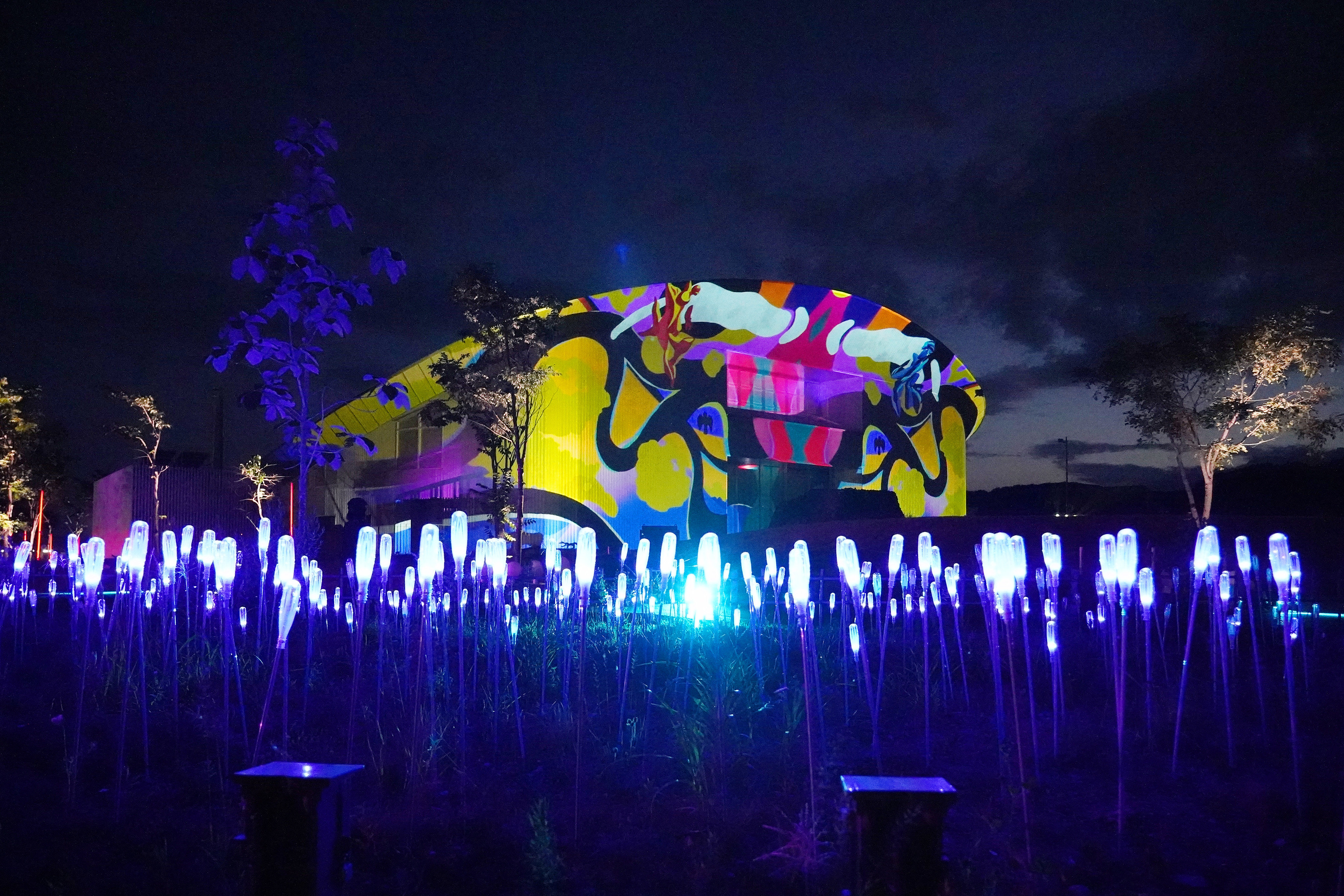 通过未来感十足的科技手段,展现出阿伊努文化所留传的创世神话。图片来源:Upopoy
