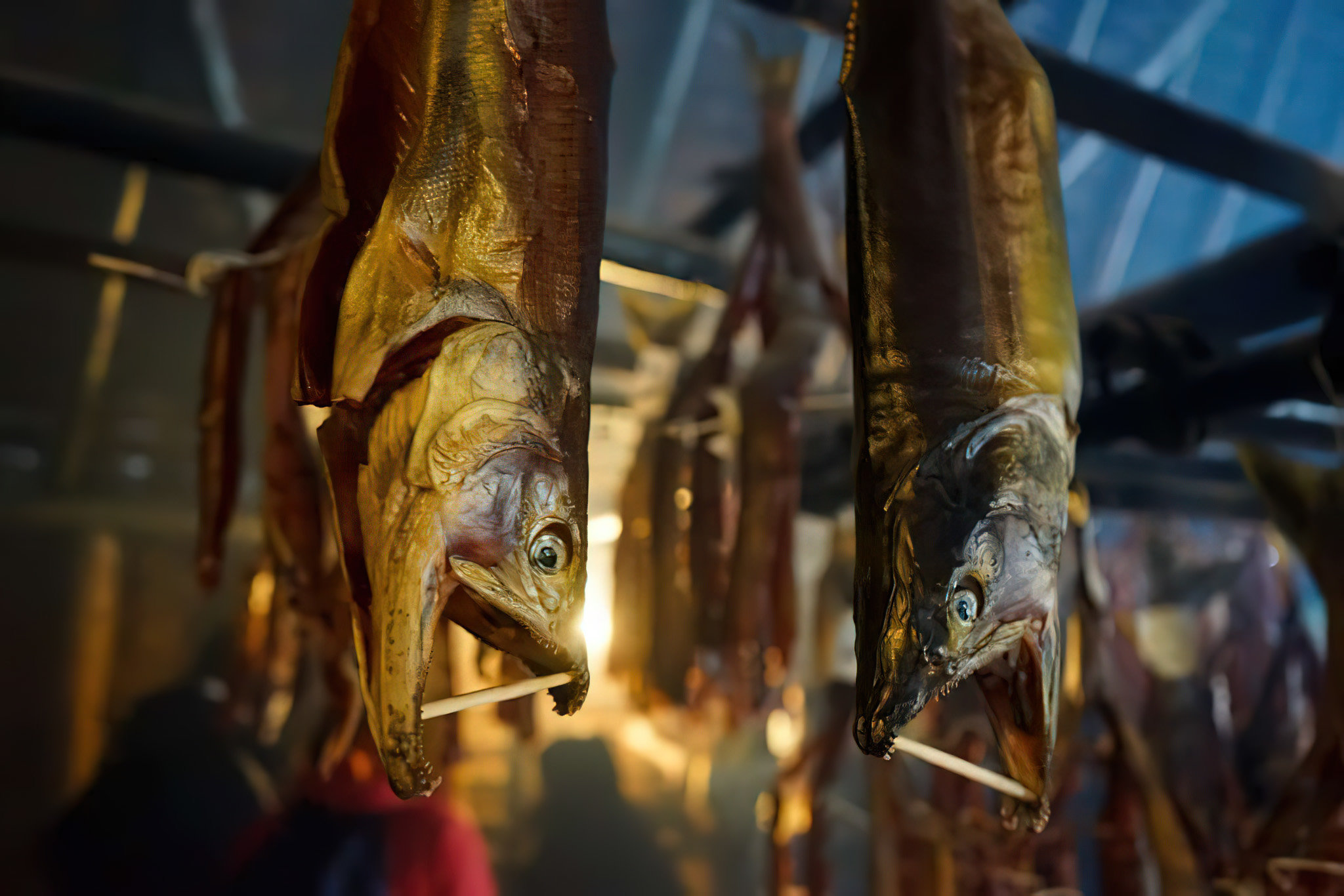 传统上来说,阿伊努人以狩猎、采集为生,因此需要保证鱼肉和其他肉类长时间不变质,以便度过漫长的冬季。图片来源:Adventure Hokkaido(北海道探险)