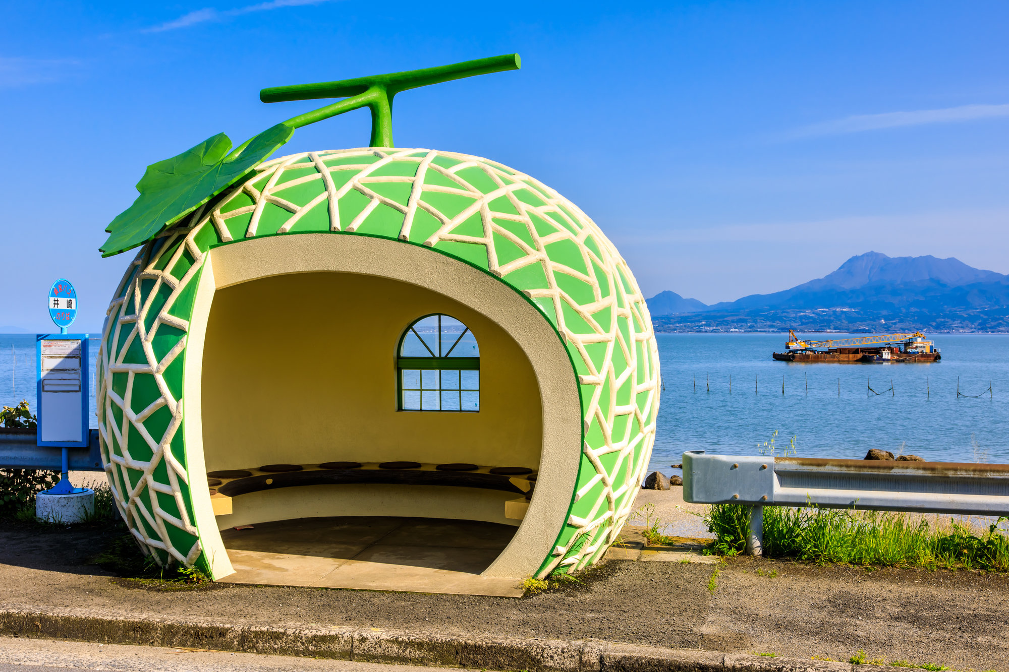 离下一站谏早站不远处,有一些看起来就“很好吃”的特色车站。分别以 16 个水果形状作为设计参考的的巨型候车亭,颜色鲜艳造型独特,从窗户还可以眺望周边美丽的风景。候车亭所在的高速公路区域被称为“心动水果巴士站路”。