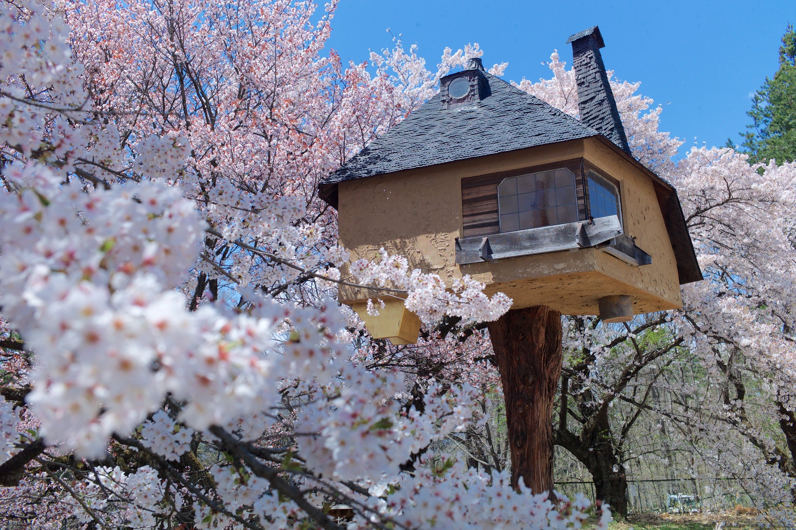 满树樱花掩映下的“茶室 彻” 图片来源: Kiyoharu Art Colony
