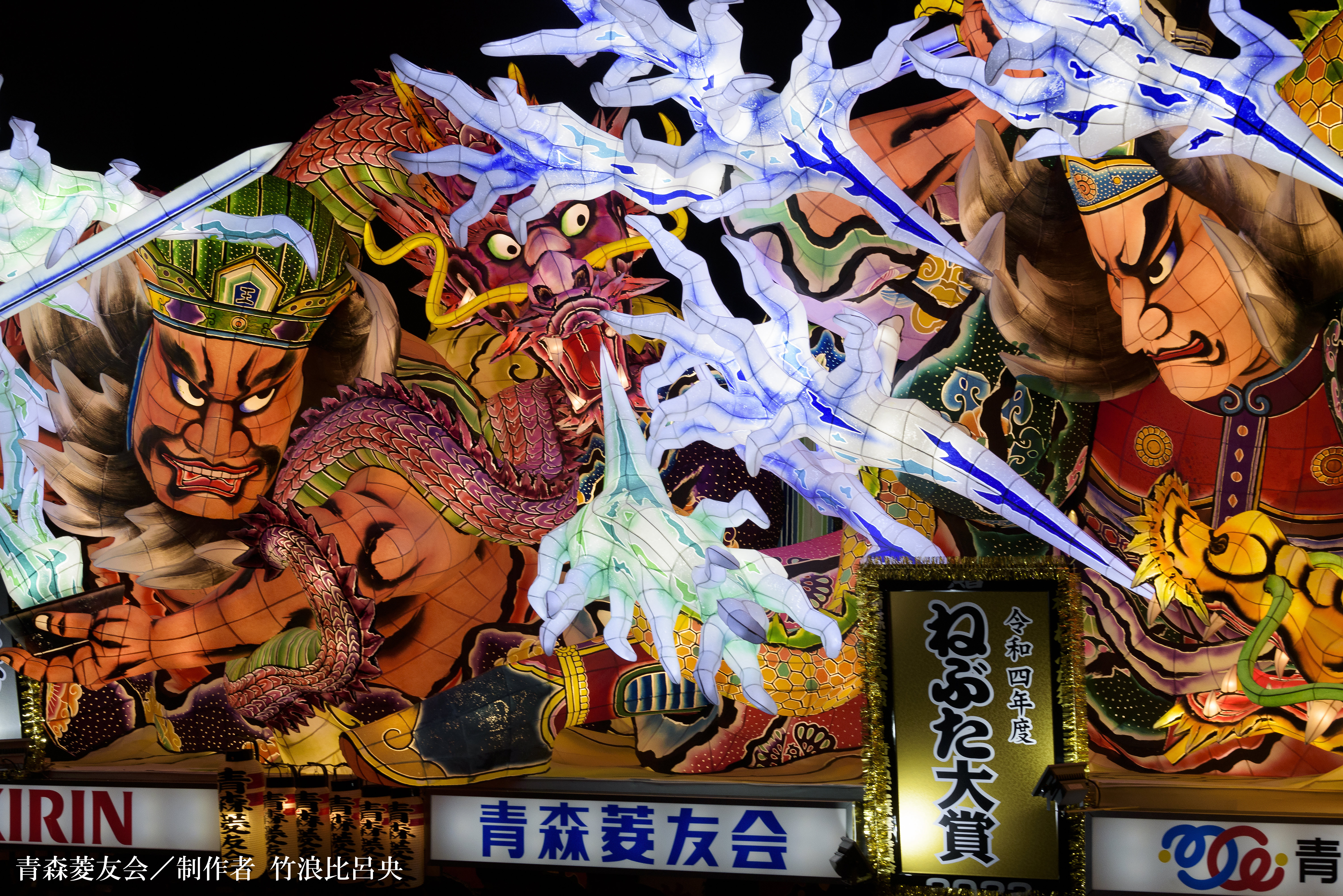 独特的纸质人物塑像,点亮青森睡魔祭的夜晚。Photo credit: Aomori Tourism and Convention Association