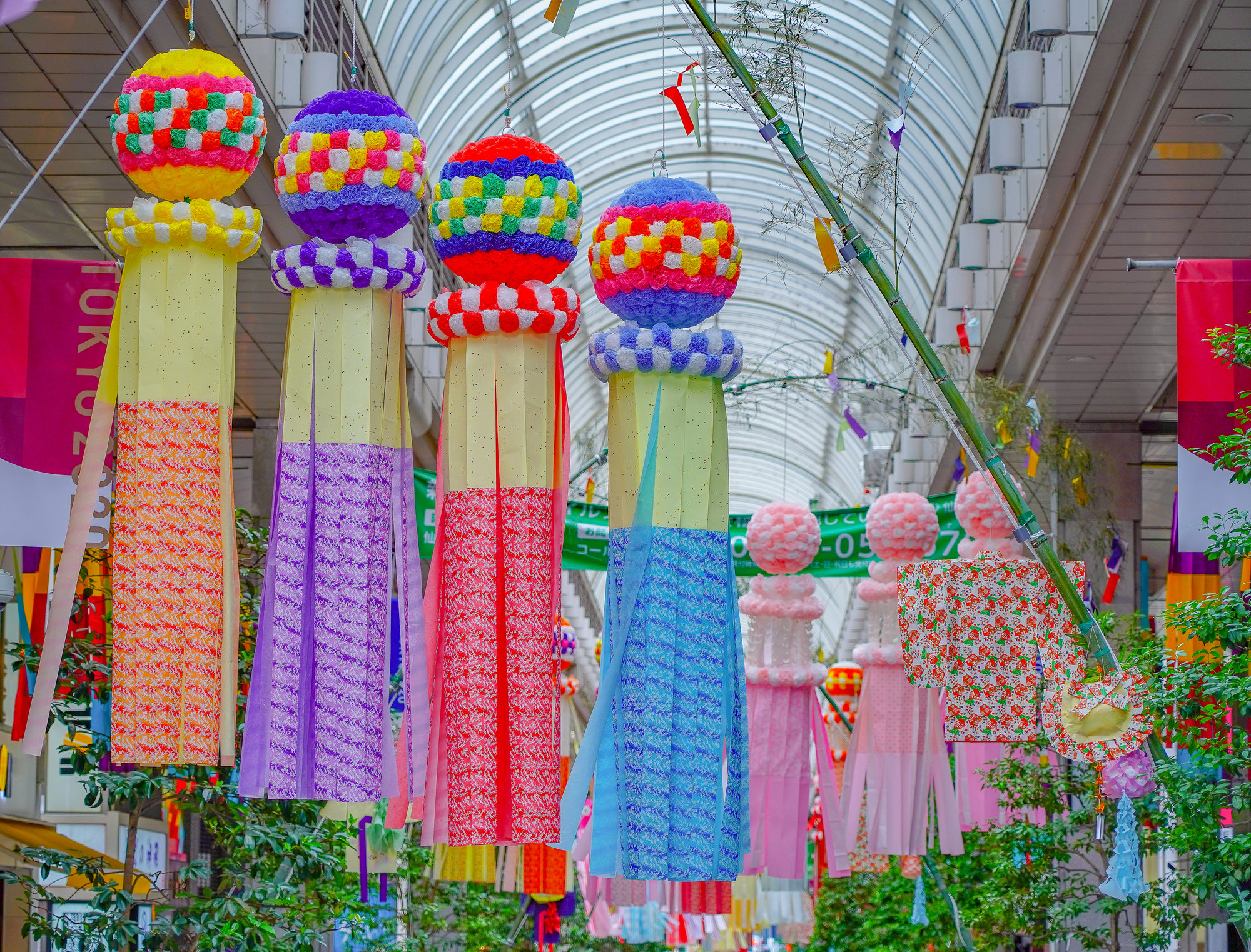日本有许多地方都会庆祝七夕祭,但只有在仙台市,您才会体会到最热情,最具参与感的七夕庆典,七夕装饰会早早摆上街头。城市的所有角落,店铺和公司的临街门面都会挂满手工节日装饰,当地居民在庆典中会身穿精致的 浴衣。街道之上,竹子和日本纸制作的数米长的装饰带会从屋顶像瀑布一样垂下,随风摇曳。