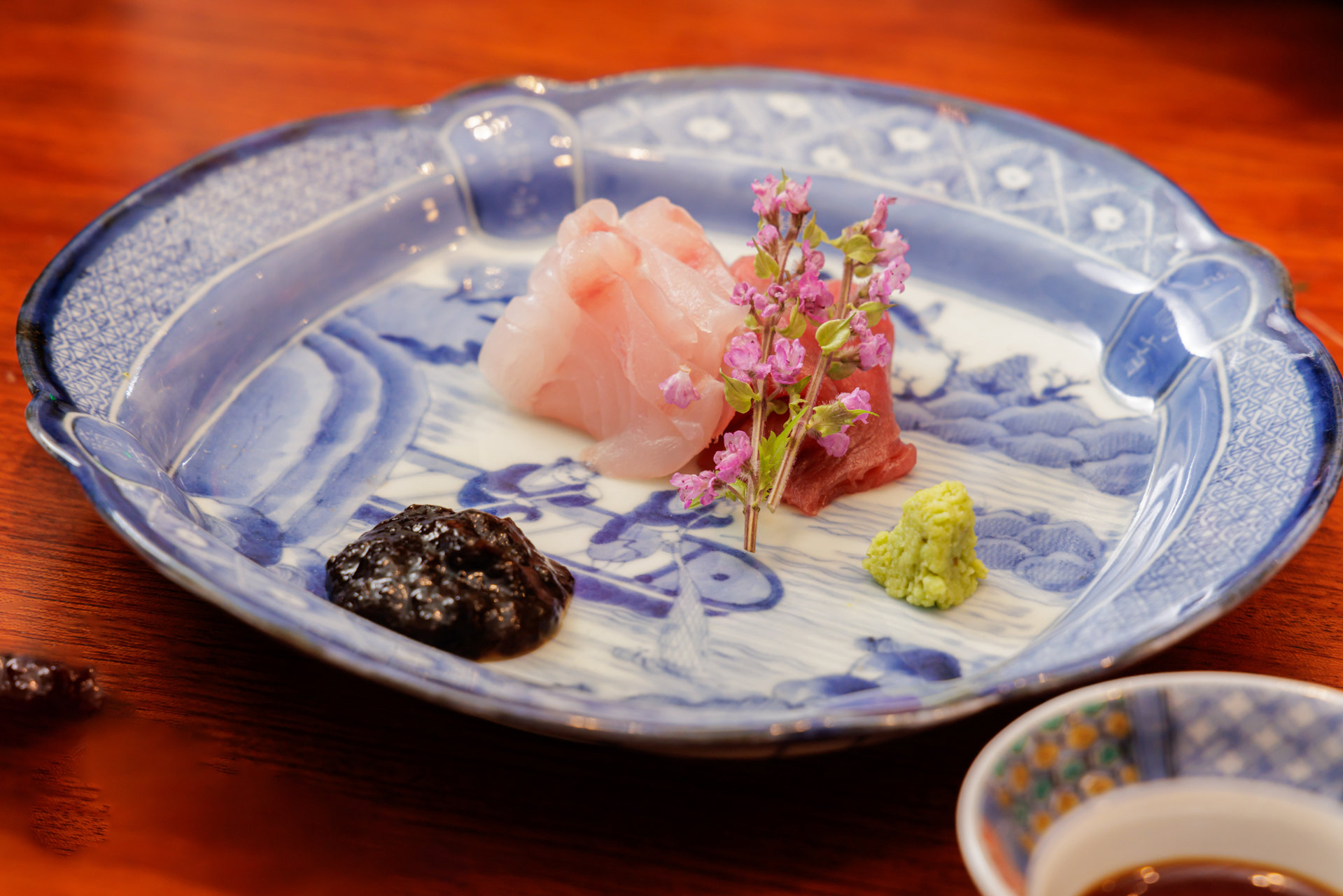 七带石斑鱼,器皿:柿右卫门染锦高台皿