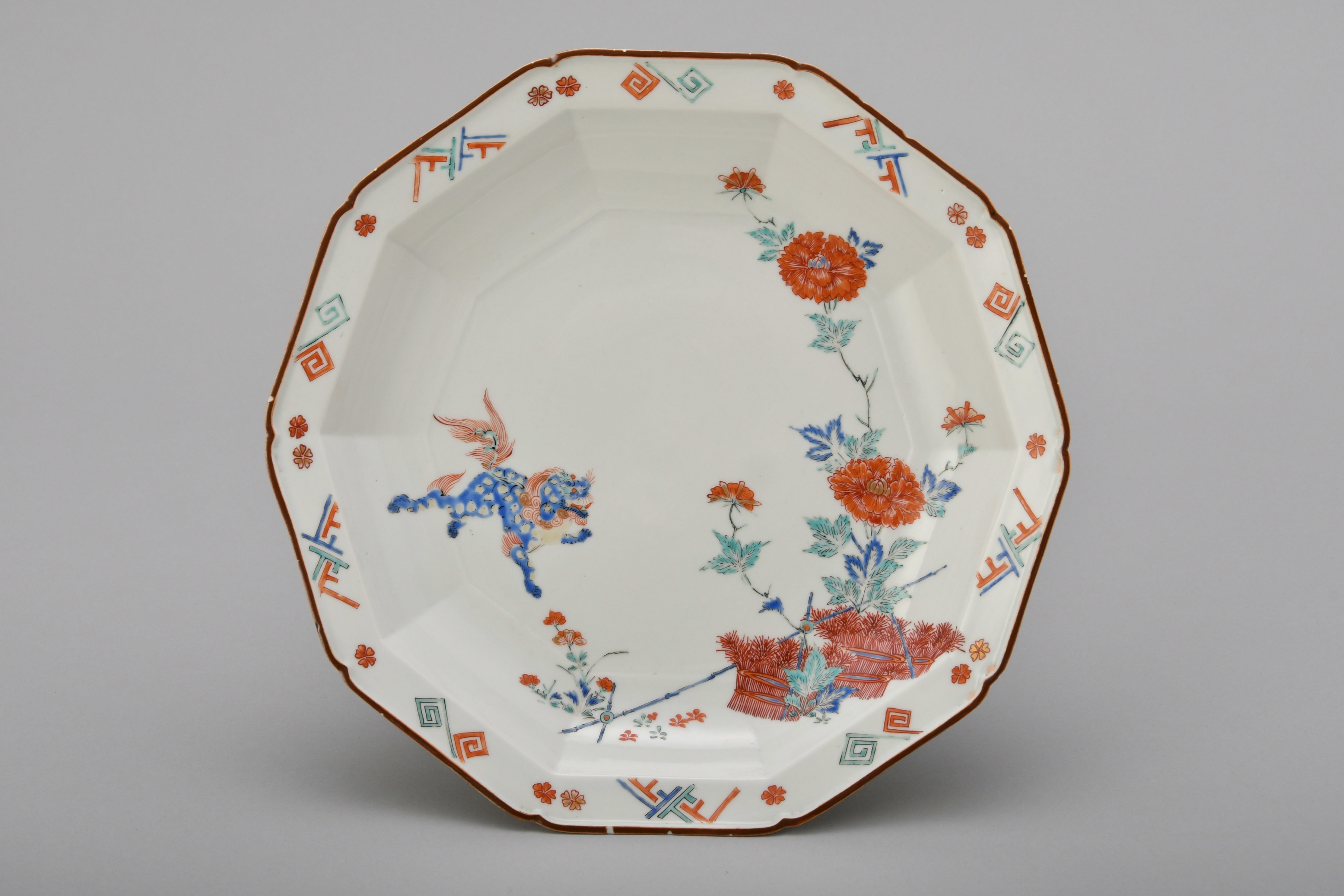 (柿右卫门风格)彩绘唐狮子牡丹文十角皿(1670~1690年代)(佐贺县重要文化遗产)