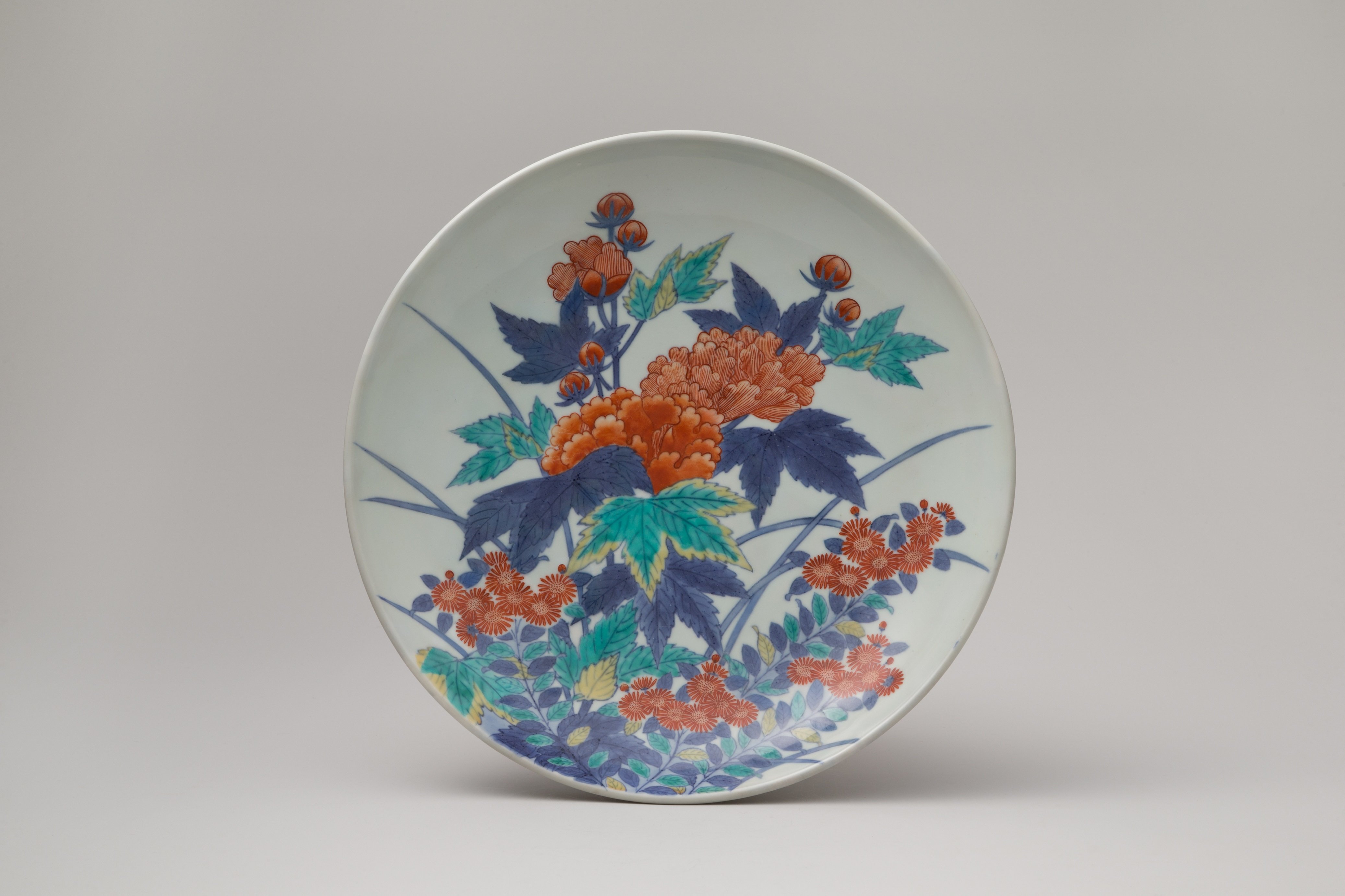 (锅岛风格)彩绘芙蓉文大皿(1700〜1730年代)(鹿岛锅岛家 捐赠)