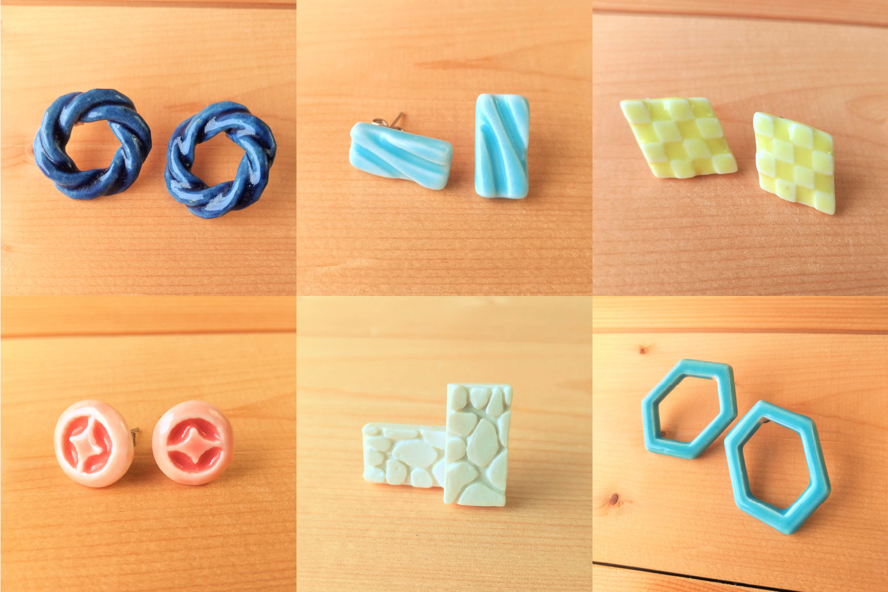 饰品店“楠-kusunoki -”售有使用有田烧制成的、色彩多样的原创饰品。不妨让有田独有的小物加入您的时尚单品吧!