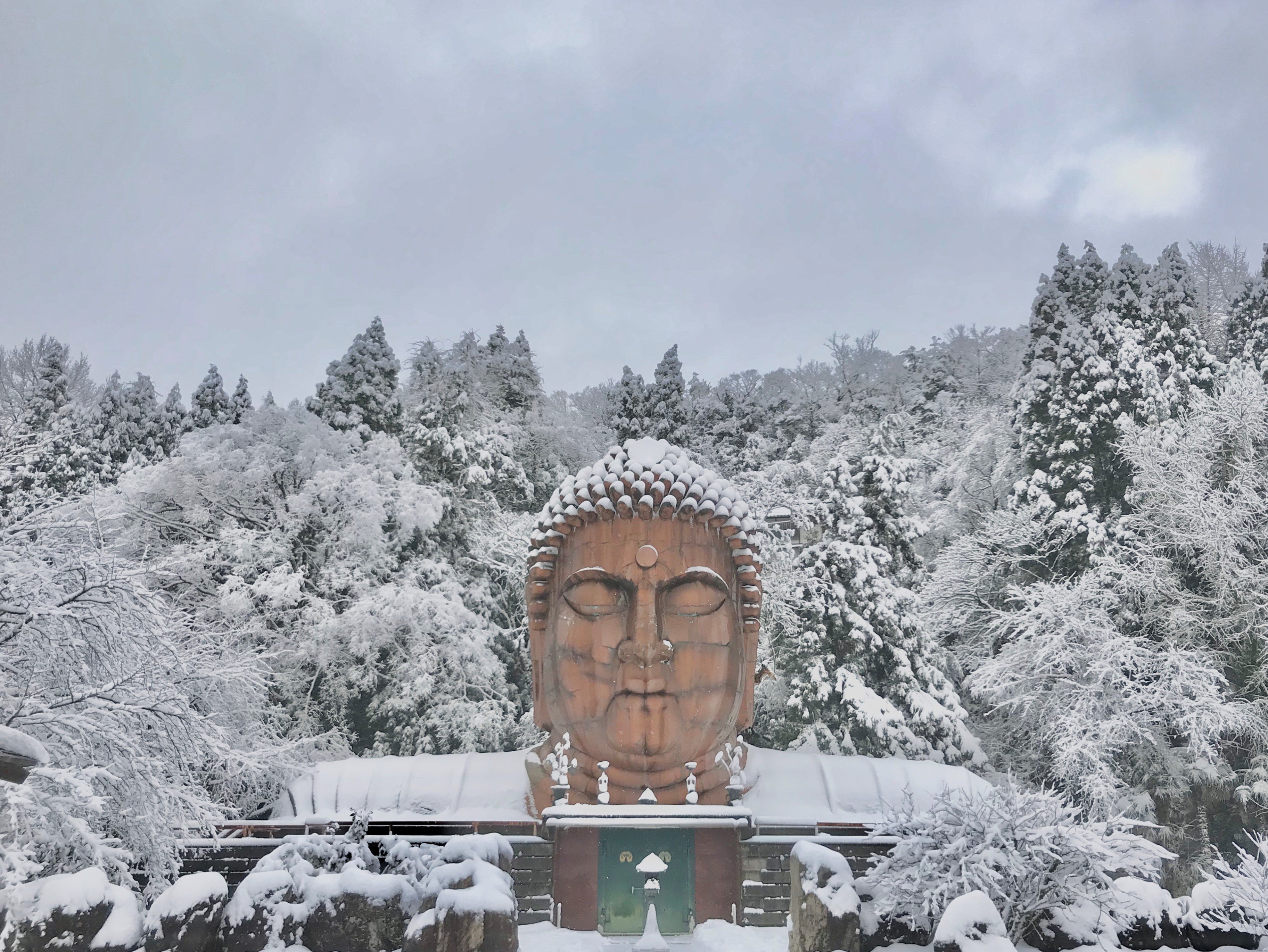 小松市有一个迷人的雕塑公园等待着游客的探访。其中最引人注目的是一尊巨大的佛头雕像,它安静地座落于当地乡野森林之中。
