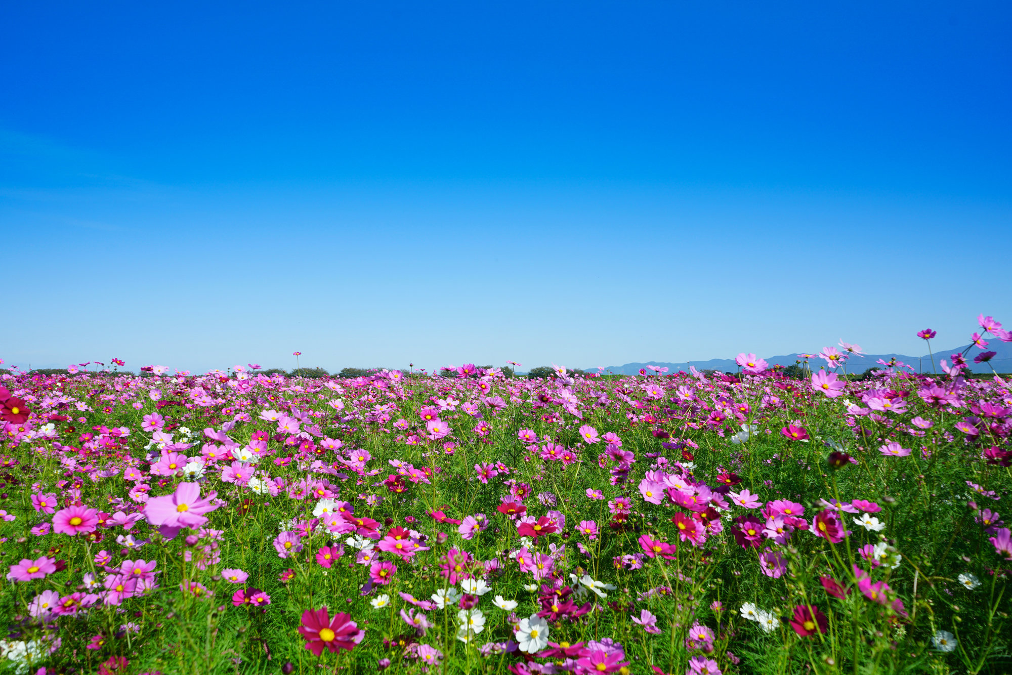每年秋天,福井市近郊的大波斯菊盛开,放眼望去一片心旷神怡。