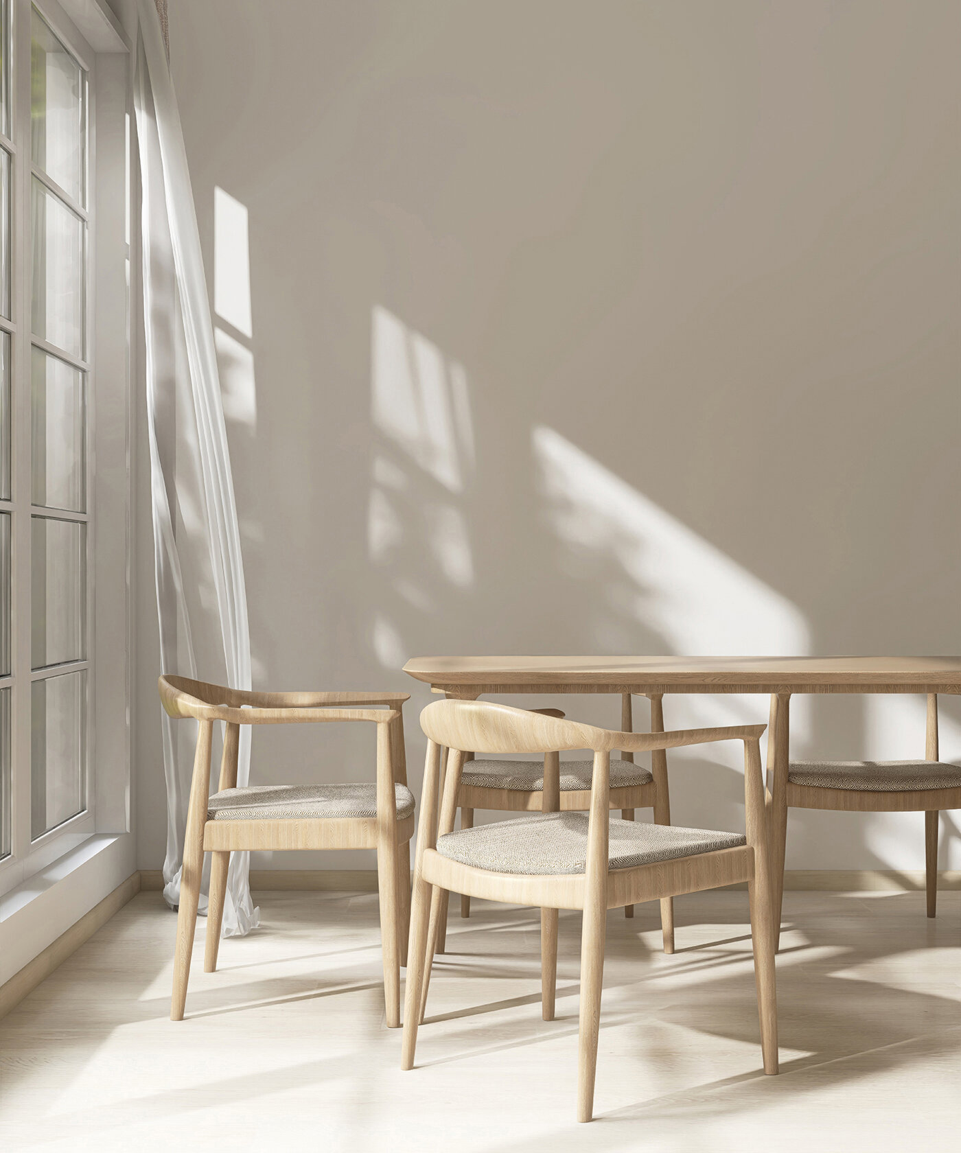 飞驒高山家具以其精湛的工艺和悠久的历史而享誉全国。自1920年以来,飞驒木匠一直以可持续方式从日本阿尔卑斯山(飞驒所在的地方)采购山毛榉木,用于制作家具,这些家具以其卓越的品质和优雅的设计而闻名。各个部件被巧妙地连接在一起,而非借助钉子或其他方式加固,展现了古老的木匠技艺和传承数代的智慧结晶。最出名的代表品是Thonet风格的经典弯木椅,该作品至今仍被认为是工艺难度极高的家具之一。凭借日本制造的优越质量和与自然和谐共生的理念,飞驒高山家具可谓任何Japandi风格家居设计的完美搭配。