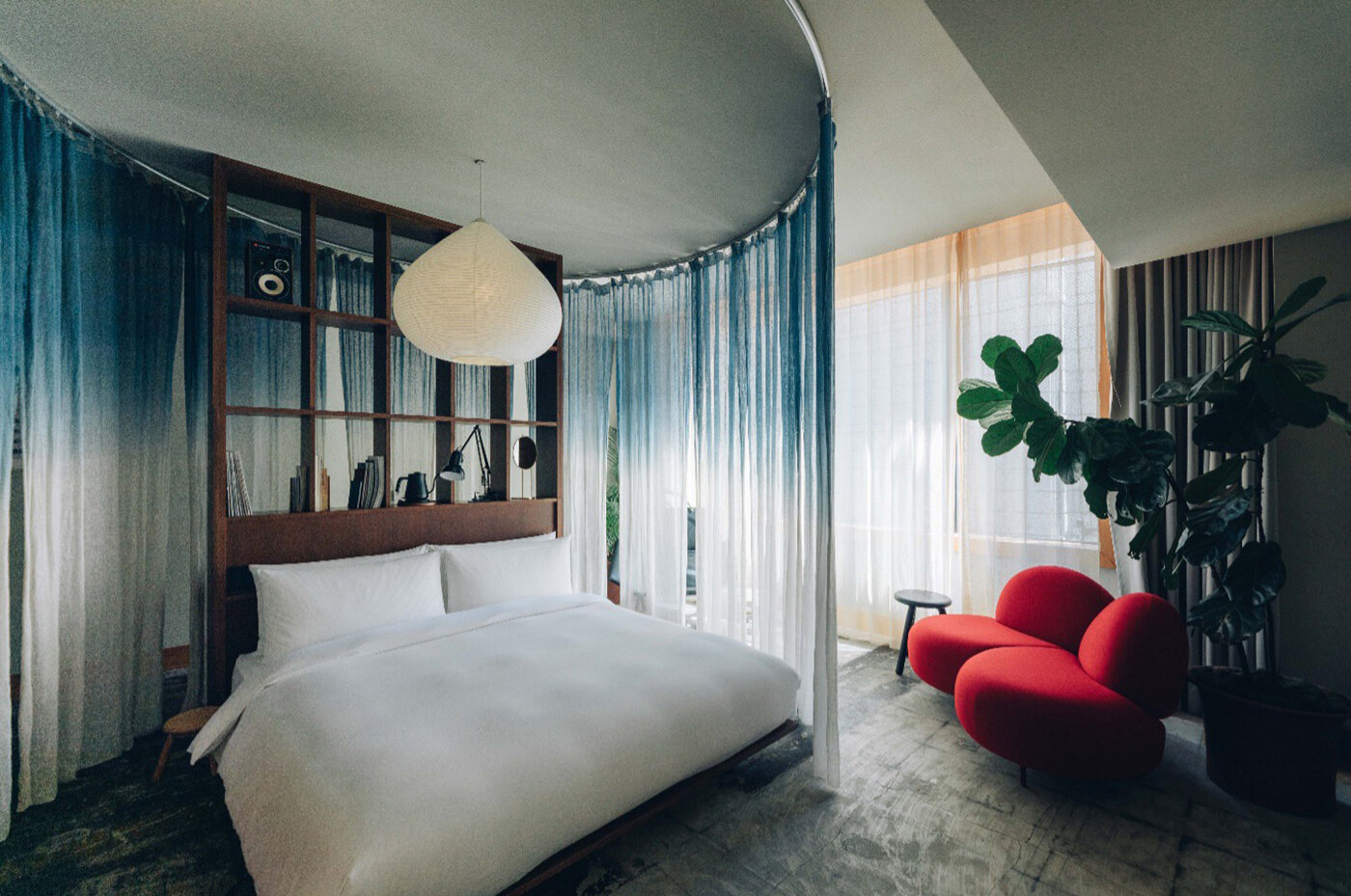 Japandi美学并不局限于某件物品,在日本许多酒店的建筑设计中,都可以窥见其身影。日本桥K5酒店就是其中的典范,这是一家坐落在东京市中心的极简主义酒店,仿佛置身于都市繁华中的静谧天堂。K5酒店低调而不失精致,室内设计由来自斯德哥尔摩的设计事务所Claesson Koivisto Rune负责,他们将自身背景与对日本工艺的欣赏完美结合,以巧妙的方式将日本蓝染织物和日式推拉门融入了他们的设计之中。