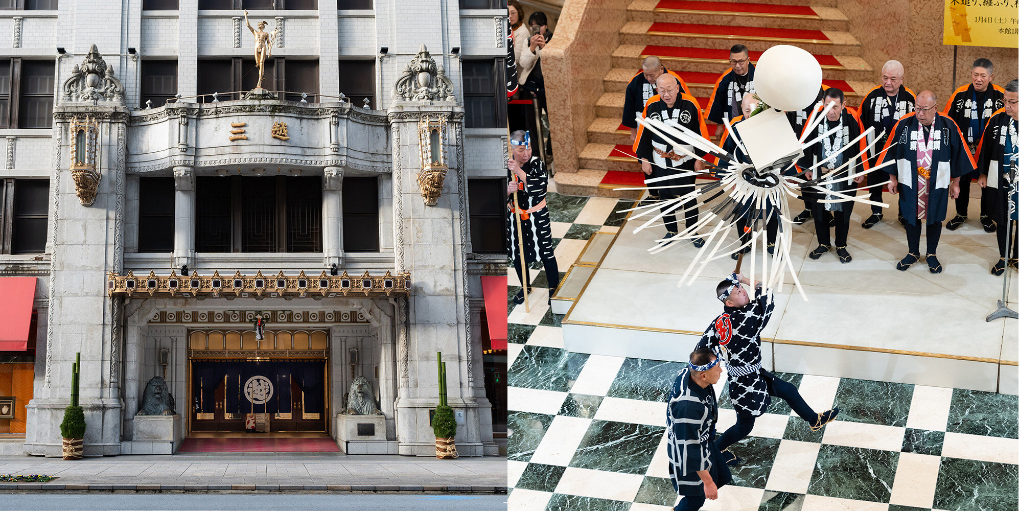 日本桥三越总店的主入口高悬巨幅暖帘,身着传统和服的店员热情相迎,诚挚感谢每位客人的光临。作为日本百货商店的鼻祖,日本桥三越总店会举办多场迎新活动,包括重现江户时代消防仪式的现场表演。伊势丹、东急、崇光及西武等老牌名店也将献上传统舞狮表演,招福纳吉。这一时节是见证东京古老传统的绝佳时机,传统服饰与历史遗韵于此刻重焕生机。