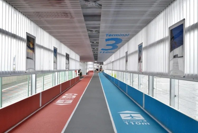 免费的黄色接驳巴士可以载运旅客往返于三个航站楼之间。您也可以从第 2 航站楼步行至第 3 航站楼。只需随着标志前行即可,大约步行 10 分钟即可到达。