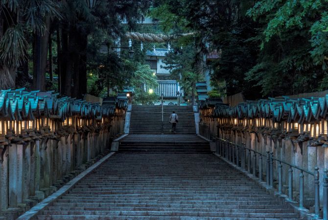 从近铁生驹站步行前往宝山寺,此段为约 1.5 公里的陡峭山路,大约需要 30 分钟的时间。