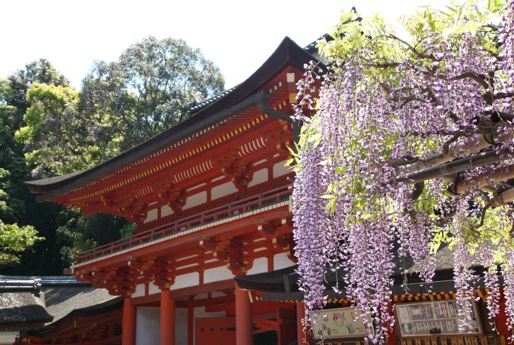 紫藤具有重要的历史意义,是 710年-1160 年间统治日本的藤原家族的纹章。在京都之前,奈良曾是日本的首都,而藤原家族曾统治了大部分的奈良地区,并在称徳天皇的指示下于公元 768 年建造了春日大社的本堂。