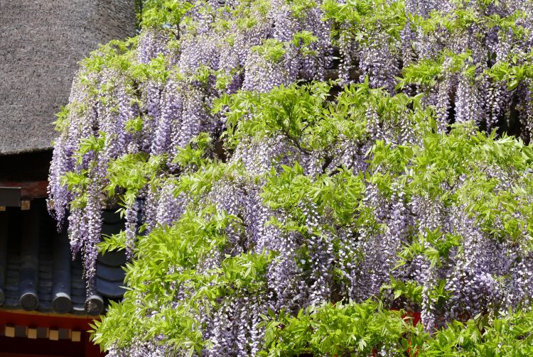 在以紫藤为代表的神社,欣赏紫藤花的雅致之美