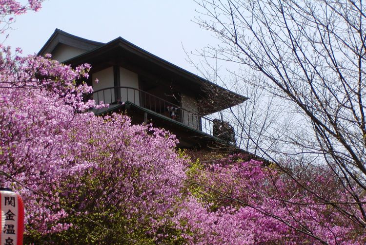 从龟井公园可远眺关金温泉的怡人景色。四月,约有 60,000 株杜鹃花争相盛开,将公园装扮成一片亮粉色的花海。