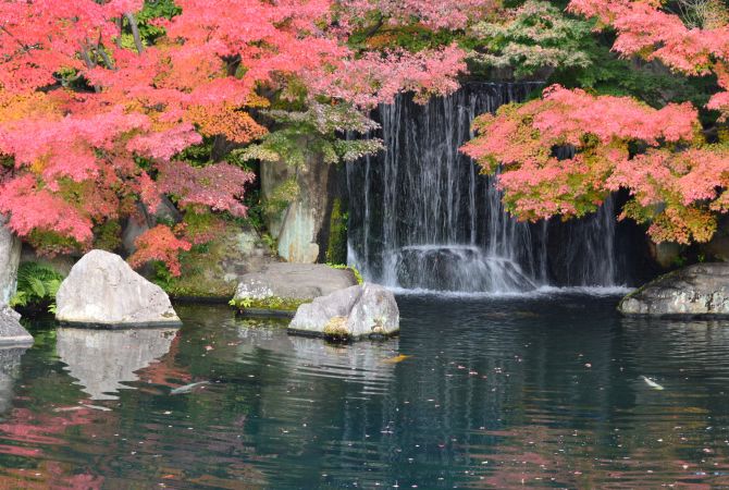好古园建于姬路城大名的西御宅邸旧址上,园内有九座不同的庭园,如日式水庭园、茶园、常青庭园、竹园与花园。这些庭园旨在呈现日本四季绝美之景。