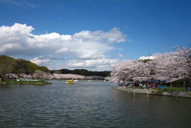 公园里大约有 1,400 棵樱花树,每年三月和四月盛开。在樱花盛开的时节,公园到处都是欣赏樱花美景的当地人和游客。